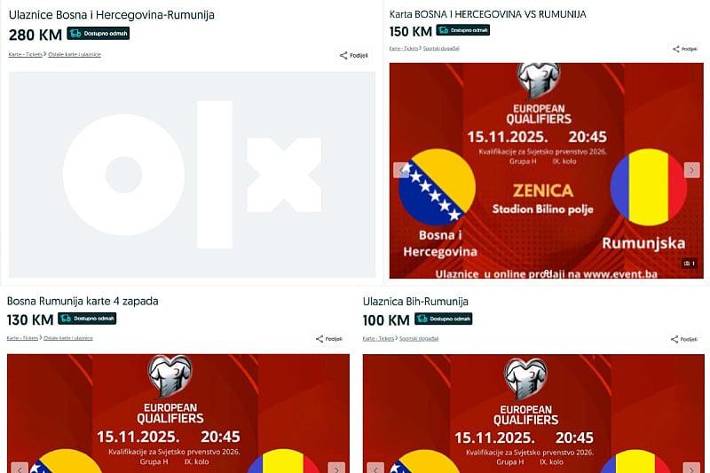 Inače, cijene po kojima je Nogometni savez Bosne i Hercegovine prodavao ulaznice su se kretale u rasponu od 30 do 50 KM.