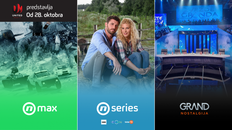 United Media, vodeća medijska kompanija u jugoistočnoj Evropi, od 28. oktobra pokreće tri nova kablovska kanala: Nova Max, Nova Series i Grand nostalgija.