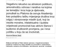 Naglašava da pokretanjem disciplinske prijave protiv njega kao intelektualca, ne samo da se dovodi u pitanje sloboda mišljenja i govora, već se dovodi u pitanje i pravo i obaveza da se o društvenim fenomenima uopšte kritički promišlja te se šalje poruka da nije dozvoljeno propitivati aspekte društvene patoogije poput nepotizma i korupcije, kao i da će se bavljenje tim temama sankcionisati.