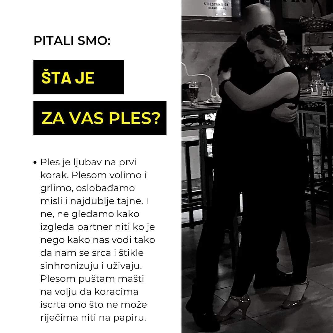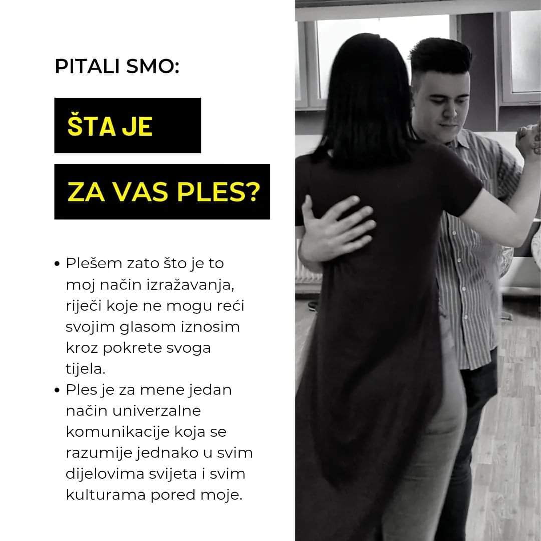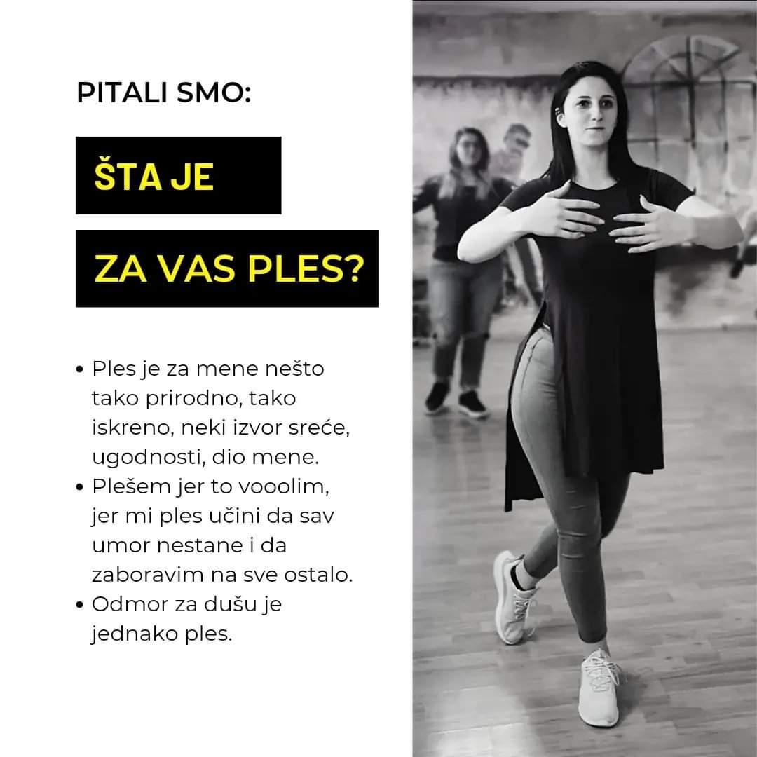 “Ples je za mene nešto tako prirodno, tako iskreno, neki izvor sreće ugodnosti dio mene. Plešem jer to vooolim, jer mi ples učini da sav umor nestane i da zaboravim na sve ostalo. Odmor za dušu je jednako ples.” rekla je naša članica Adilović Ajla.
