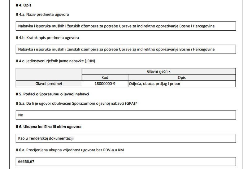 Uprava za indirektno oporezivanje BiH nabavlja džempere u vrijednosti od skoro 80.000 KM