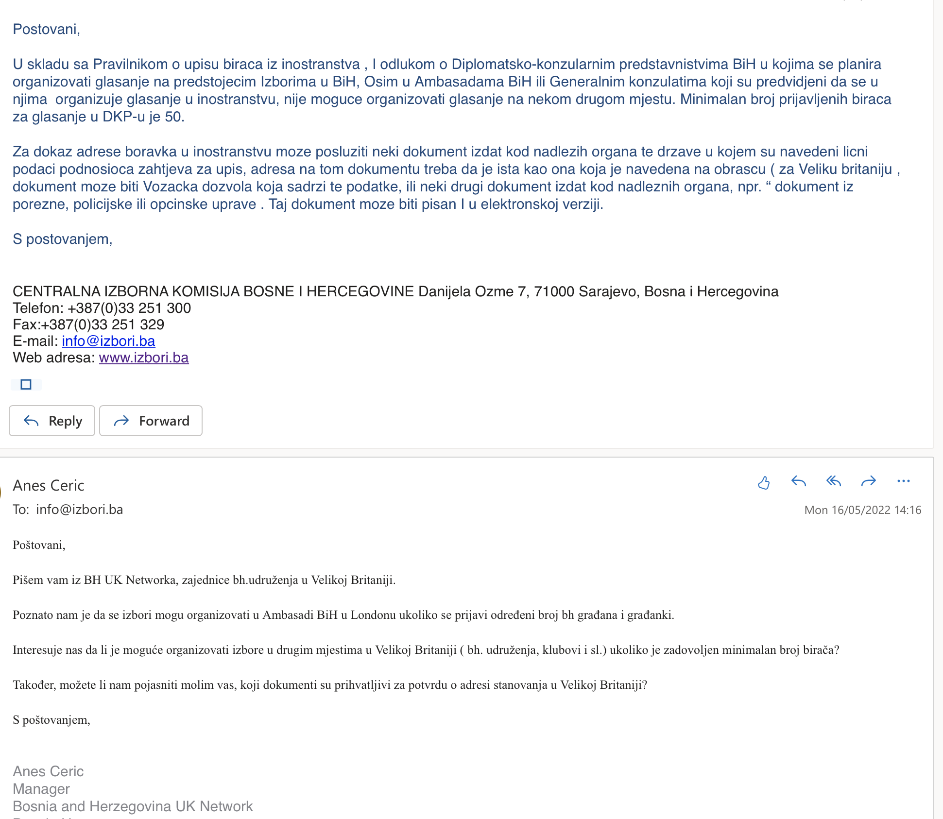 U nastavku možete pročitati zvaničan odgovor od Centralne izborne komisije Bosne i Hercegovine.