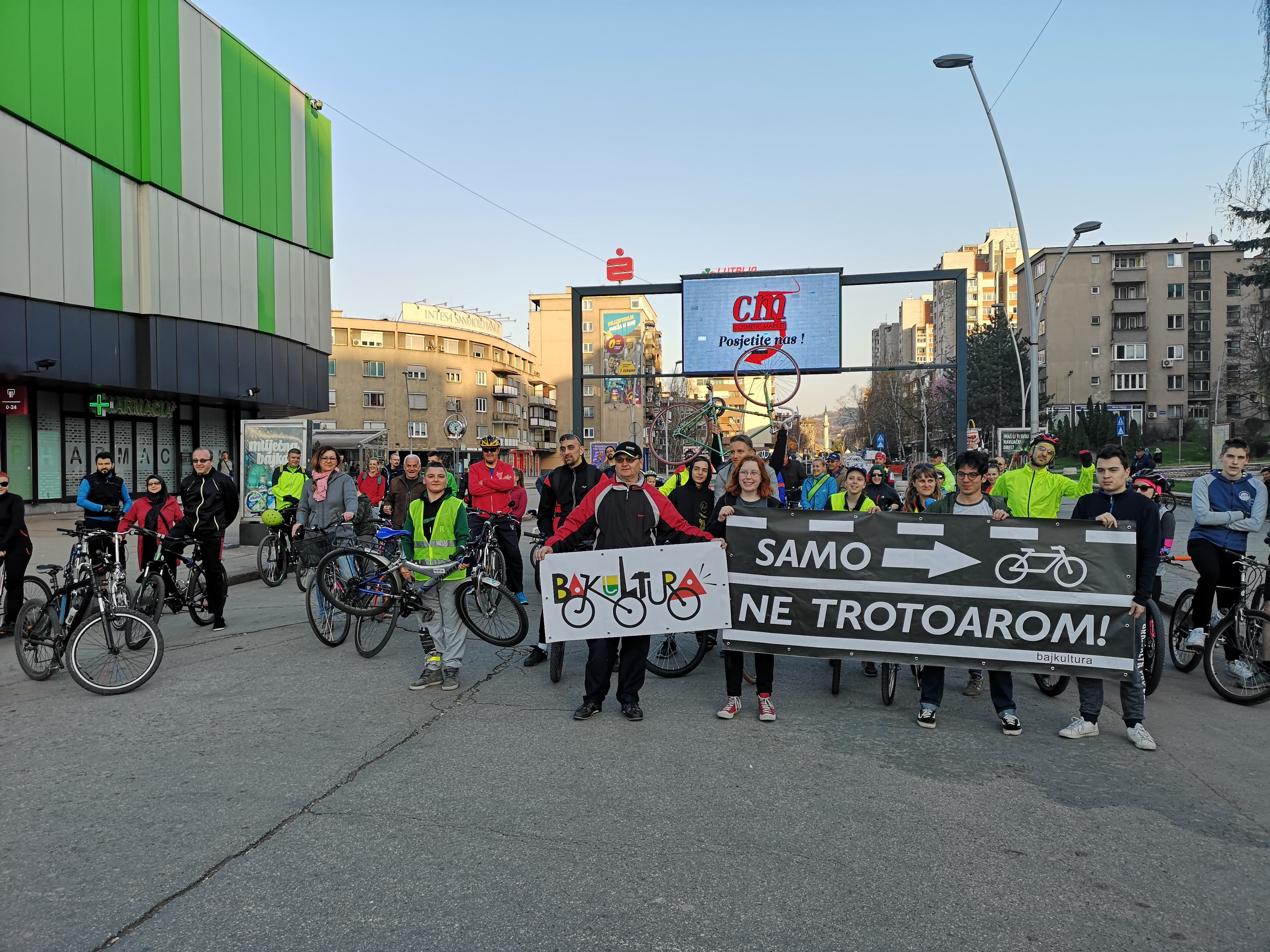 Aktivisti pokreta Bajkultura, sekcije Udruženja mladih “Priroda i društvo” koja za cilj ima razvoj biciklističke infrastrukture u Zenici i promociju bicikla kao modela održive urbane mobilnosti, organizovali su protekli vikend na zeničkom bulevaru simboličnu uličnu akciju pod nazivom “Samo ne trotoarom”, u sklopu realizacije istoimene kampanje.