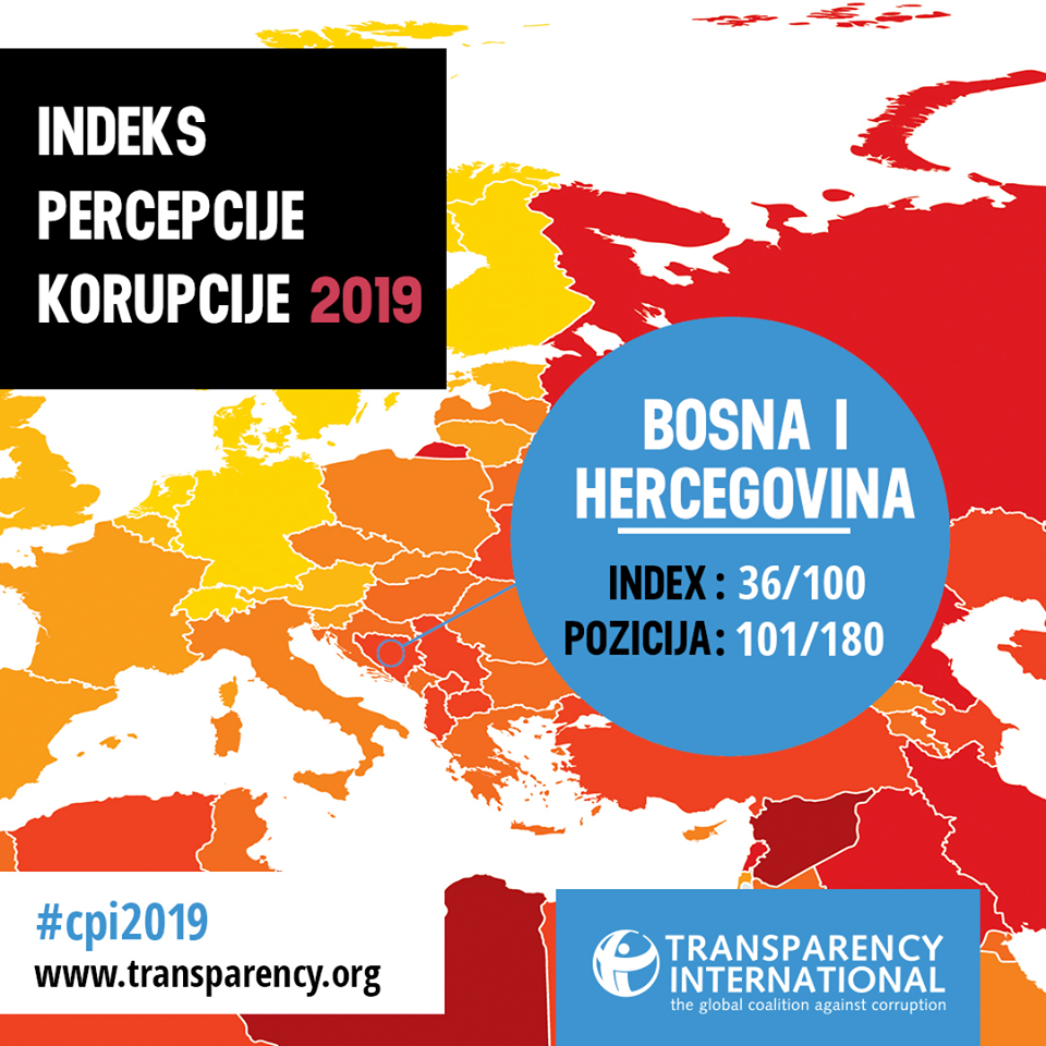 Na rang listi Indeksa, koju je objavio Ured Transparency international Bosna i Hercegovina je pala za 11 mjesta u odnosu na prošlu godinu i, zajedno s Kosovom, zauzela 101. poziciju od 180 država, prenijela je Anadolija.