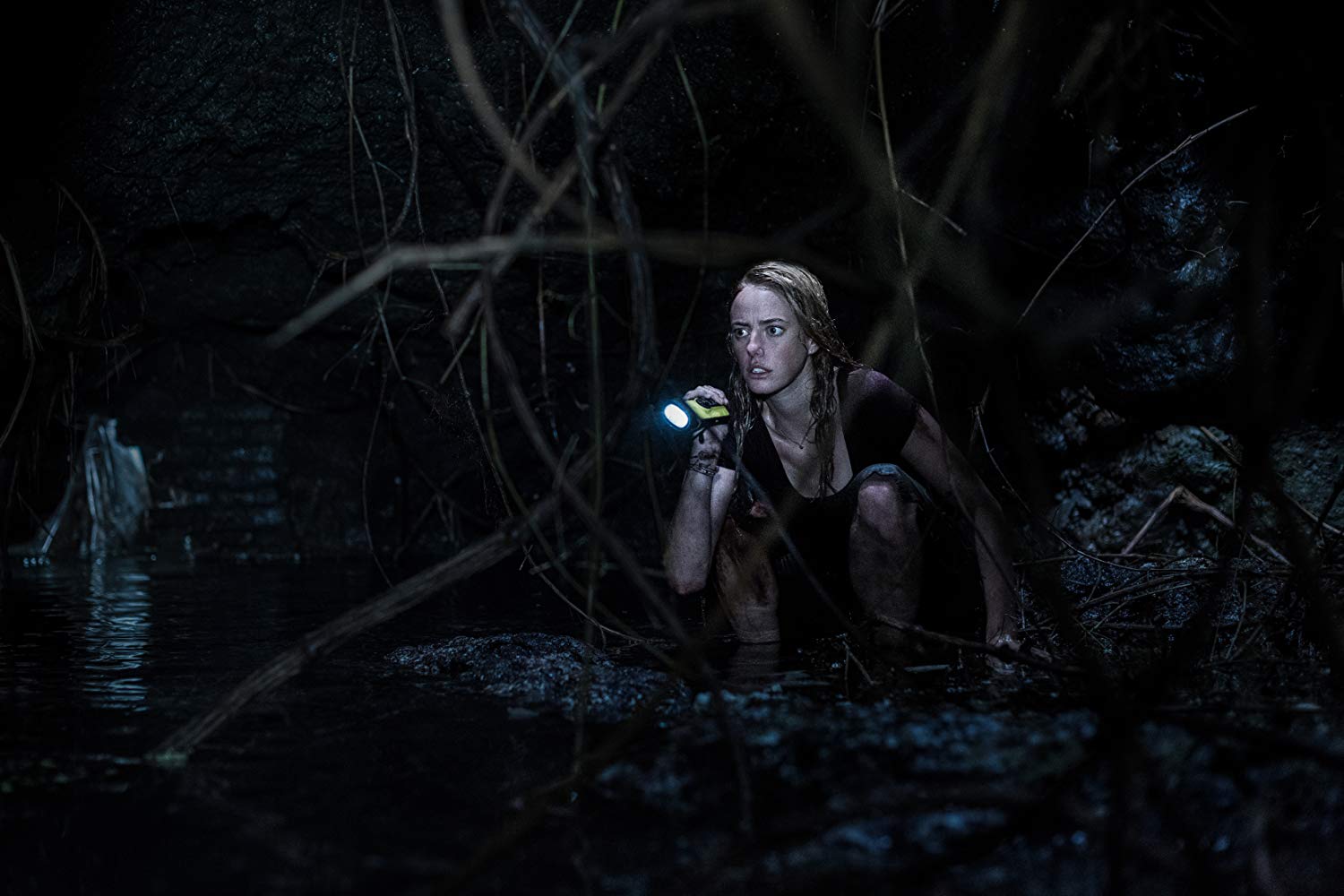 Ona ga nalazi teško ranjenog u njihovoj porodičnoj kući i njih dvoje ostaju zarobljeni, jer se voda od poplava sve brže širi. Kako ostaje sve manje vremena da se pobjegne od snažne oluje, Hali i njen otac će otkriti da je voda koja nadolazi njihov najmanji problem.