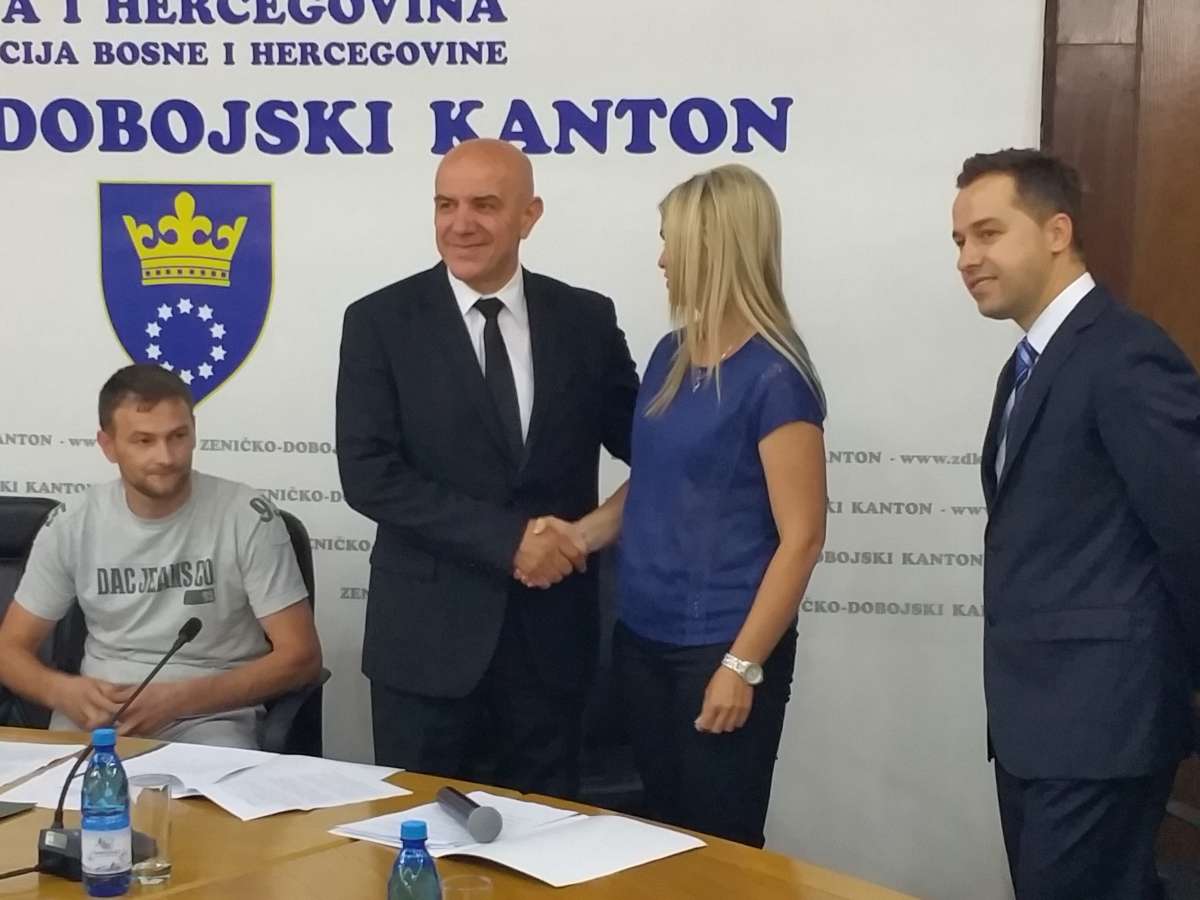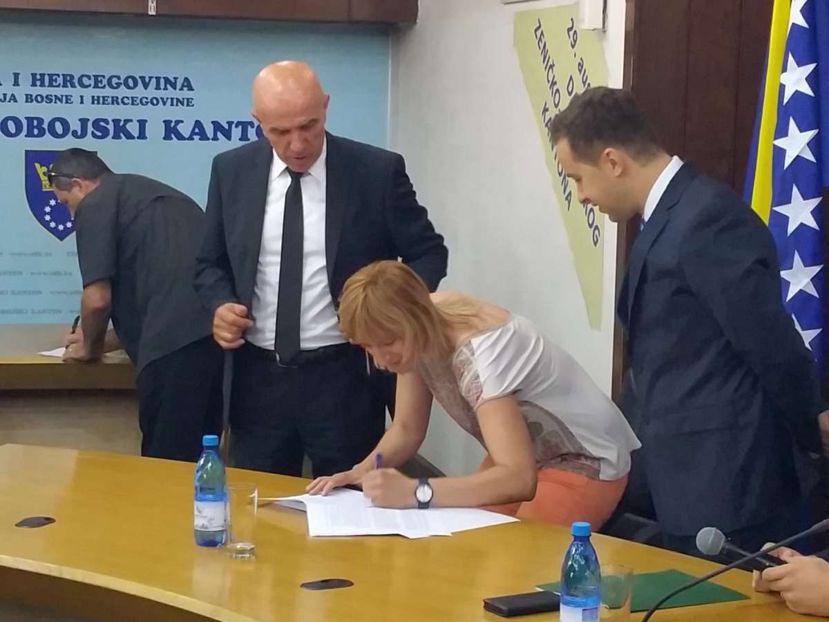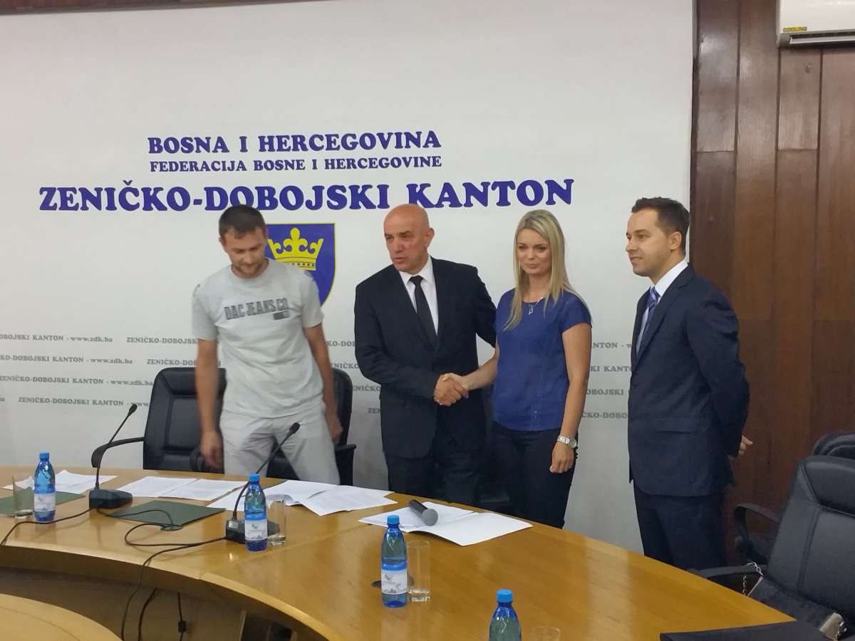 Premijer Zeničko-dobojskog kantona Miralem Galijašević i izvršni direktor IK Banke Zenica Edin Mujagić, potpisali su danas ugovore o kreditu za stambeno zbrinjavanje mladih sa prvim korisnicima ovih veoma povoljnih kredita.