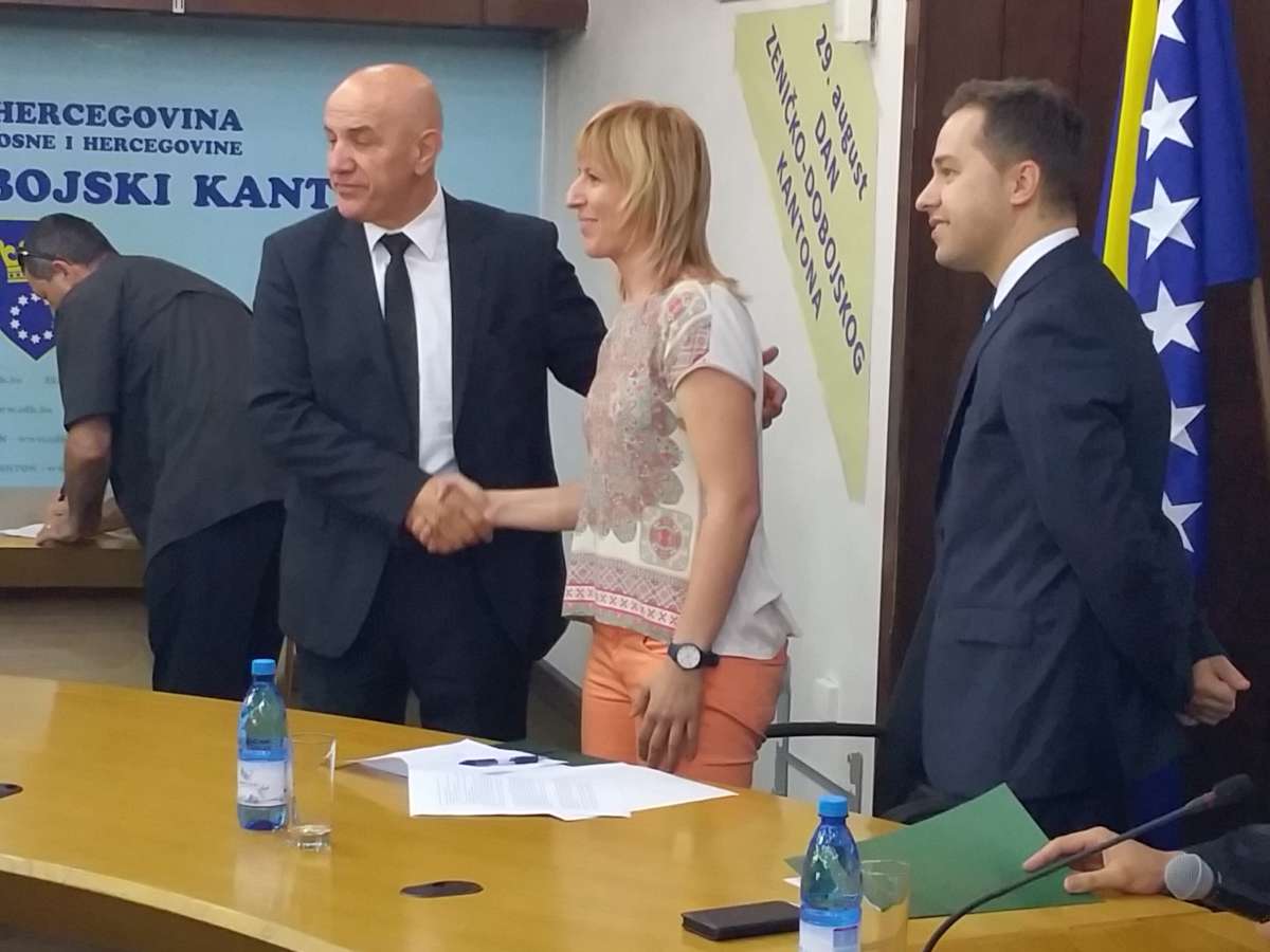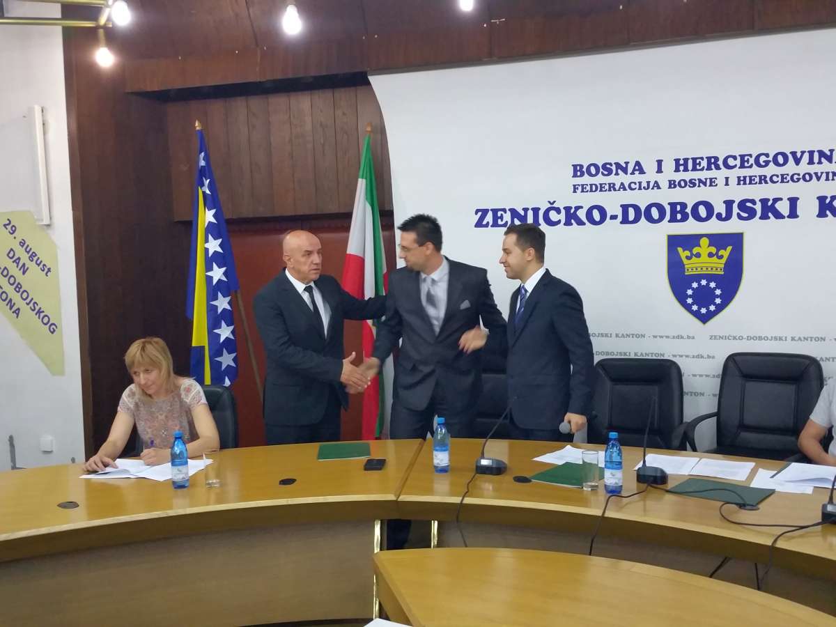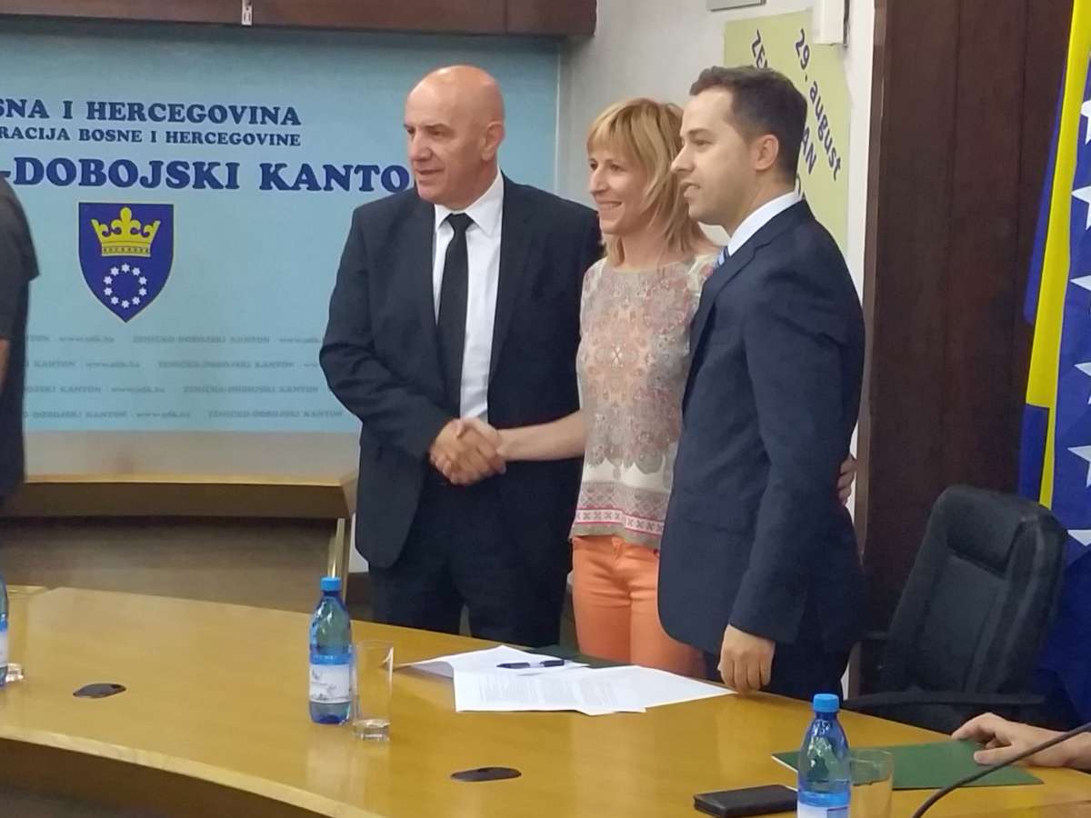 Premijer Zeničko-dobojskog kantona Miralem Galijašević i izvršni direktor IK Banke Zenica Edin Mujagić, potpisali su danas ugovore o kreditu za stambeno zbrinjavanje mladih sa prvim korisnicima ovih veoma povoljnih kredita.