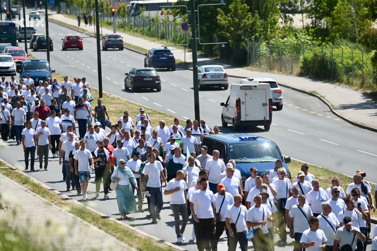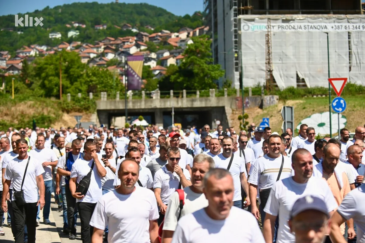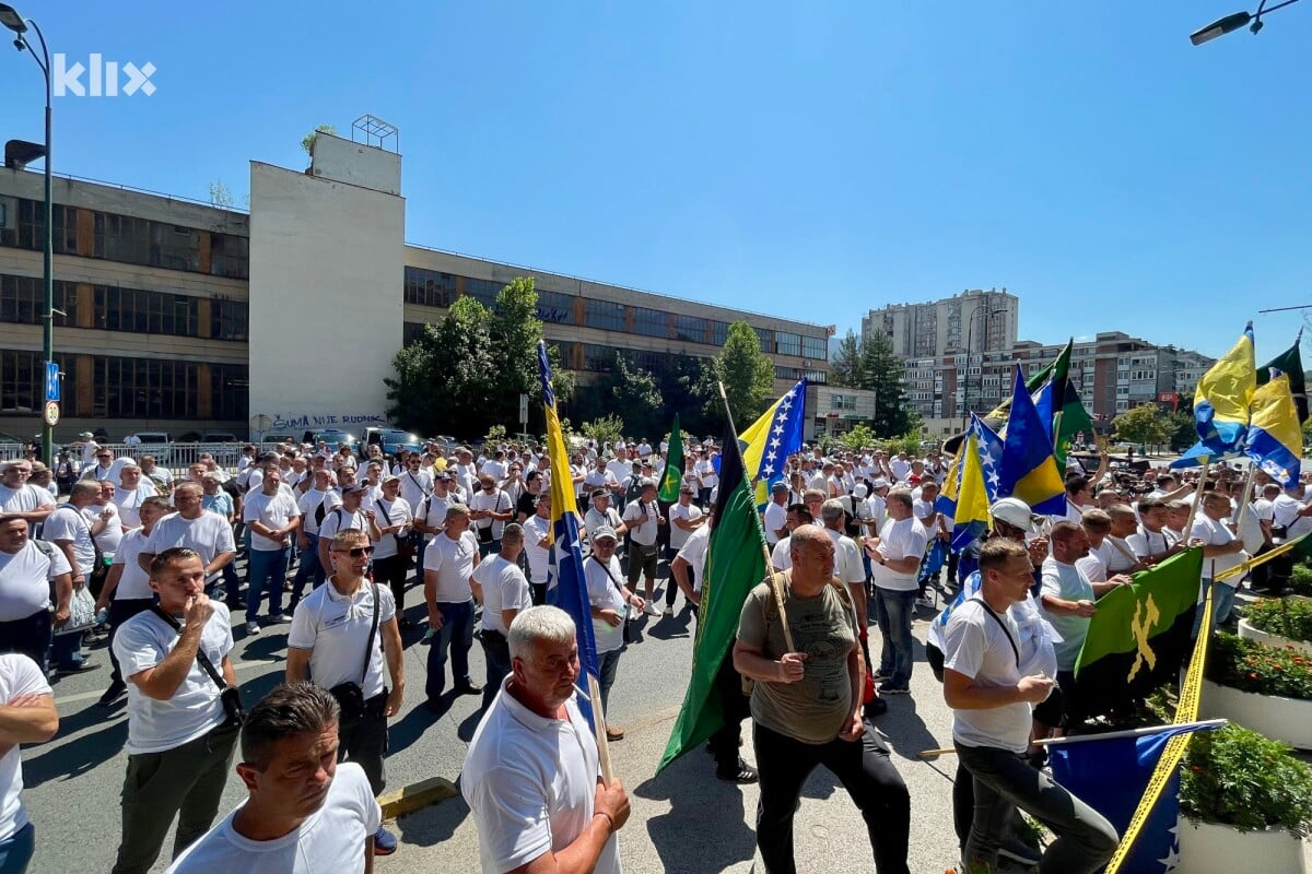 Oni su u koloni prošetali od željezničke stanice do zgrade vlade, a protesti su počeli himnom Bosne i Hercegovinom. Saobraćaj je u ulici Hamdije Čemerlića obustavljen.