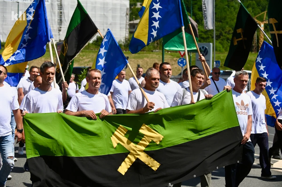 Zenički rudari nisu dobili platu za maj i juni ove godine, a njima su kao podrška stigle su i kolege iz drugih rudnika iz koncerna Javnog preduzeća Elektroprivreda BiH.