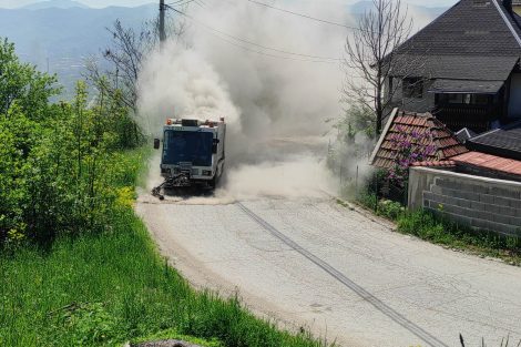 Ovu dionicu inače održava kompanija Špic Beton, ali na samom vozilu nismo mogli uočiti oznake bilo koje kompanije, mada mještani kažu da pripada njima.
