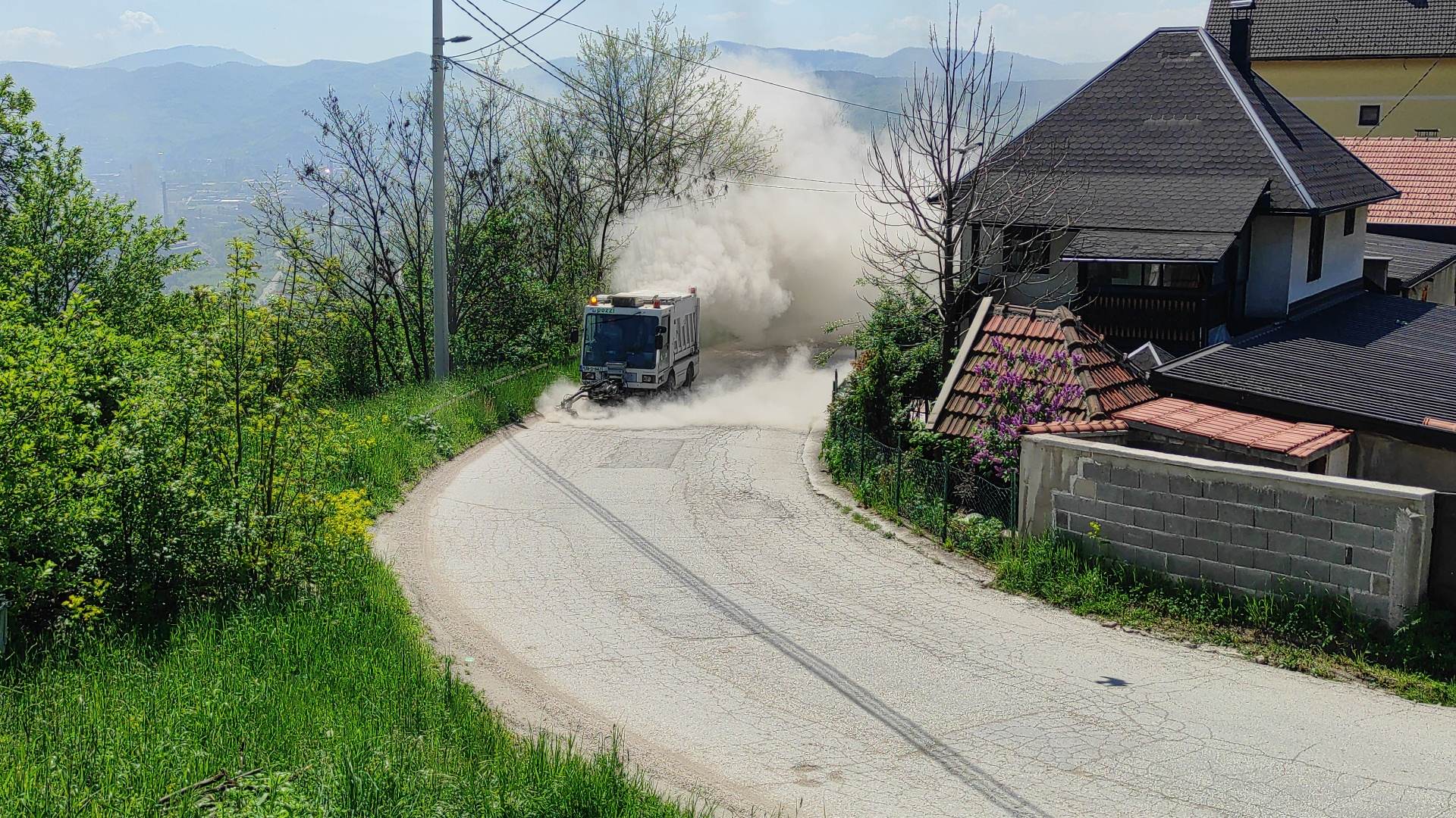 Kako nam je pojasnio naš čitalac, ugledao je oblak prašine i zvuk, te je zabilježio zanimljive kadrove mašine za čišćenje kolovoza.
