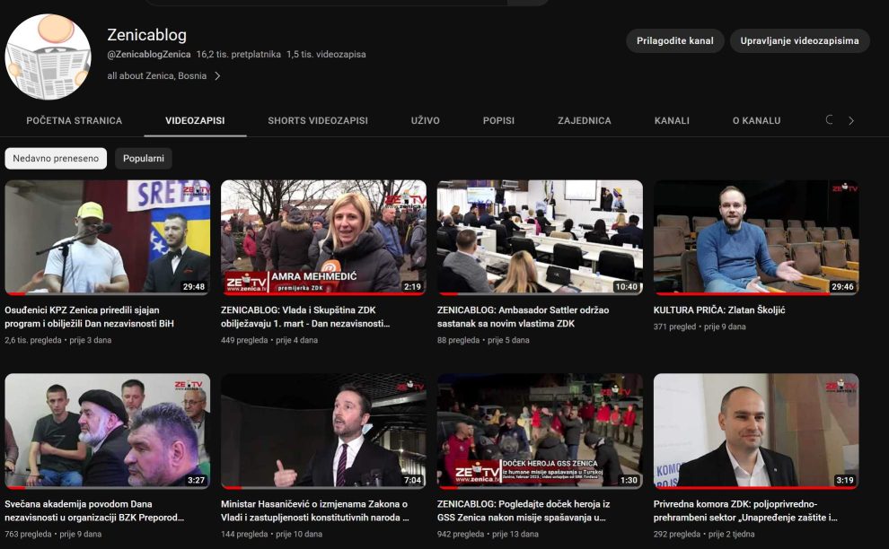 Zenicablog ima svoj Youtube kanal na kojem je više od 1.500 videa koje smo objavili u proteklom periodu – prijavite se da besplatno dobijate obavjesti kad objavimo novi video, a kanal pogledajte KLIKOM ovdje.
