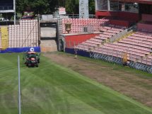 – Mi smo bili ovdje i kada se postavljao travnjak, 2012. godine. Tada smo postavili busen. Problem je nastao zbog razvoja jednogodišnje livadarke, koja je na ovakvim terenima korov – puno je svjetlija i nema jak korijen pa se, prilikom startova na utakmicama i treninzima, lako izbacuje iz svog ležišta. Sutra je u planu dosijavanje trave, slijedi proces gnojidbe, pjeskarenja te redovno prskanje i uzgoj nove trave – kazao je Feni vlasnik slovenske kompanije Gorazd Nastran.