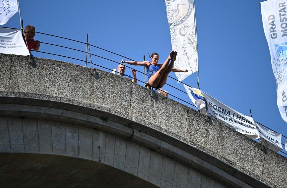 Skokove je otvorila Petra Kožul s tačkom plesa na svili s luka Starog mosta, a potom su uslijedili skokovi na noge.