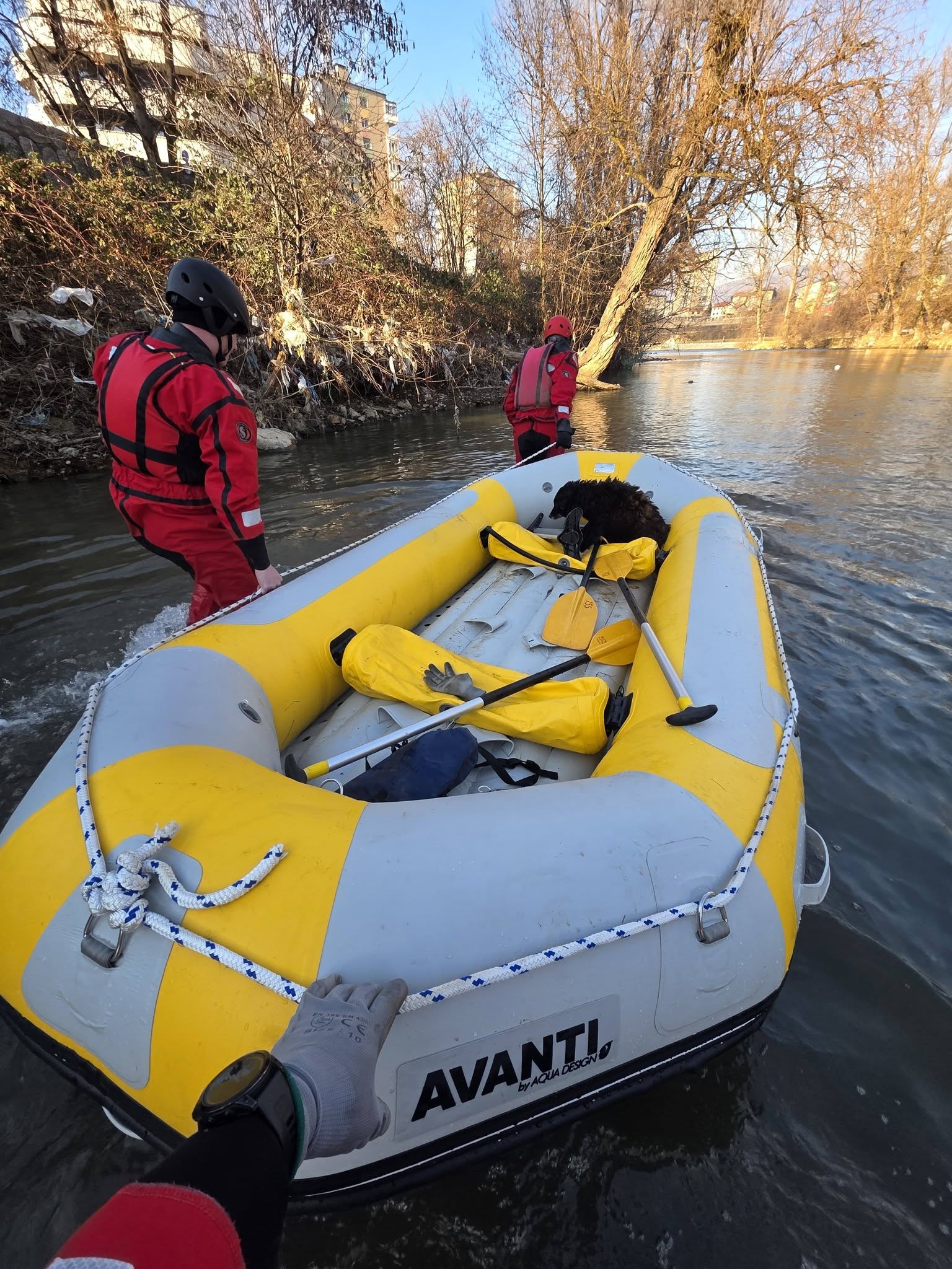 Pripadnici ISS – Interventne spasilačke službe Zenica danas su, na osnovu prijave građana, uspješno okončali humanu spasilačku akciju u kojoj je iz rijeke Bosne izvučen pas koji je upao u korito rijeke u rejonu naselja Odmut.