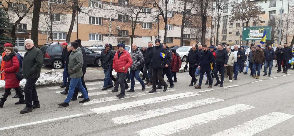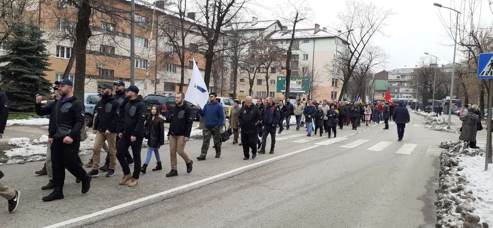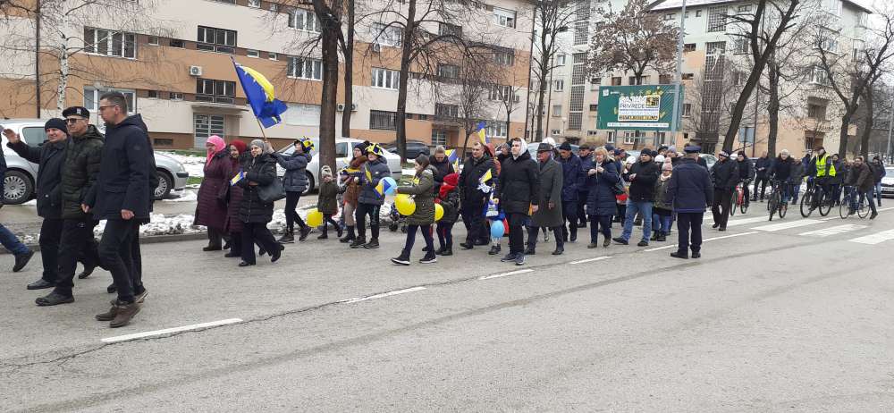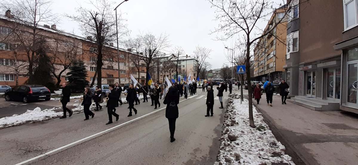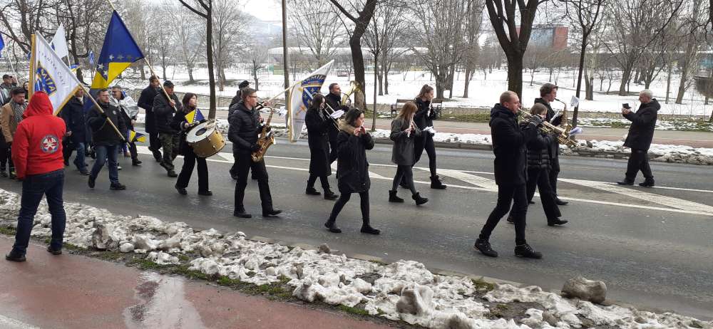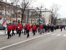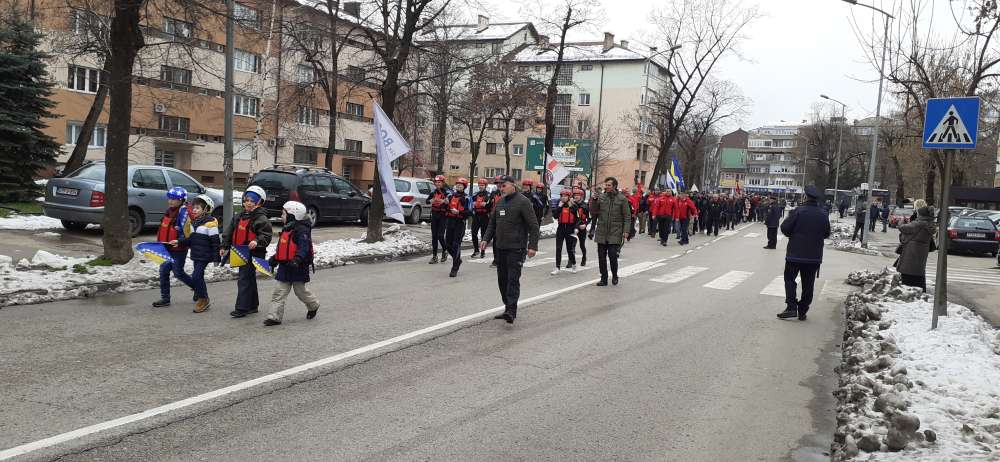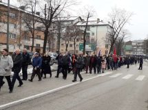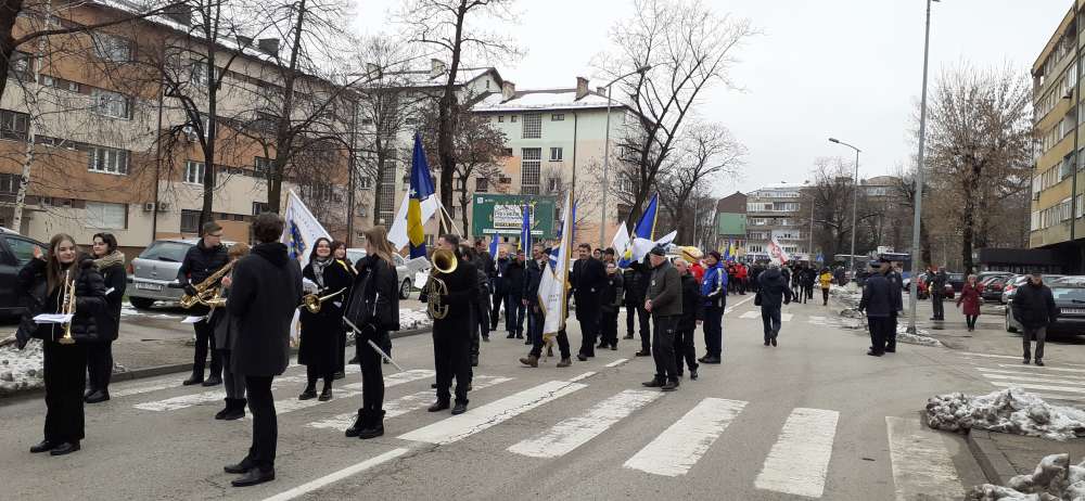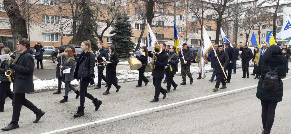 Nakon obraćanja i polaganja cvijeća na spomen-kosturnici Papirna, uslijedio je defile ulicama grada.