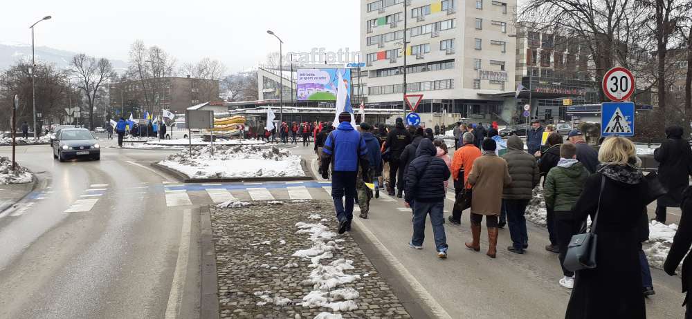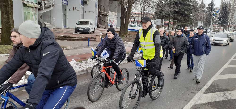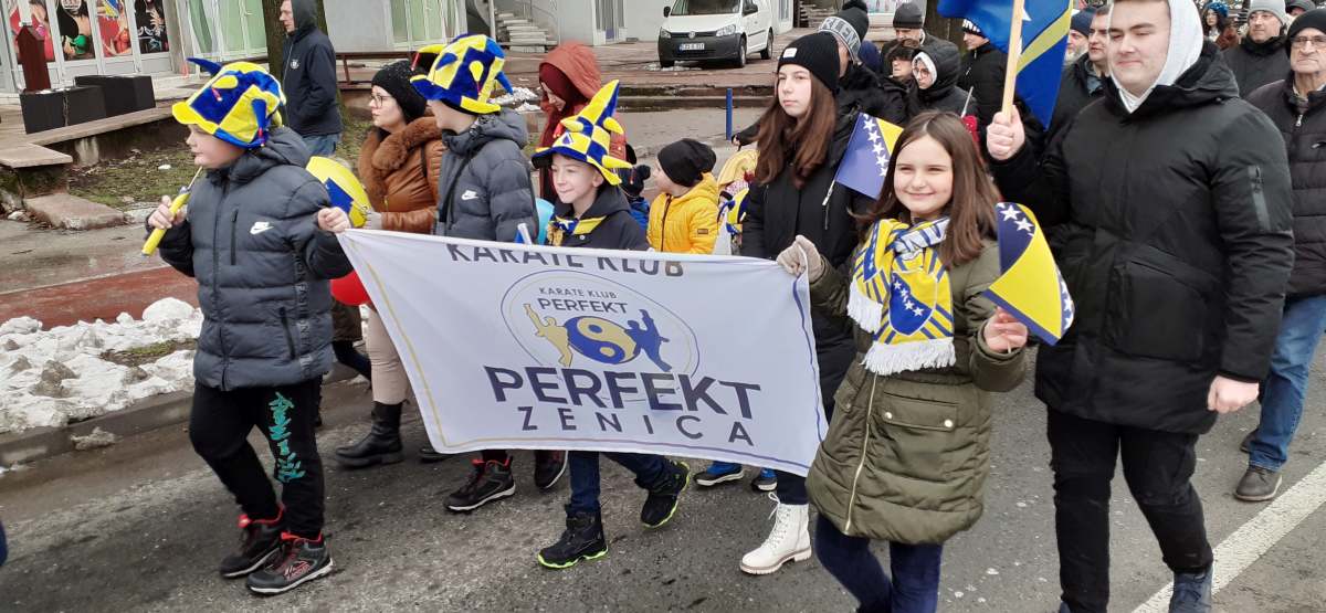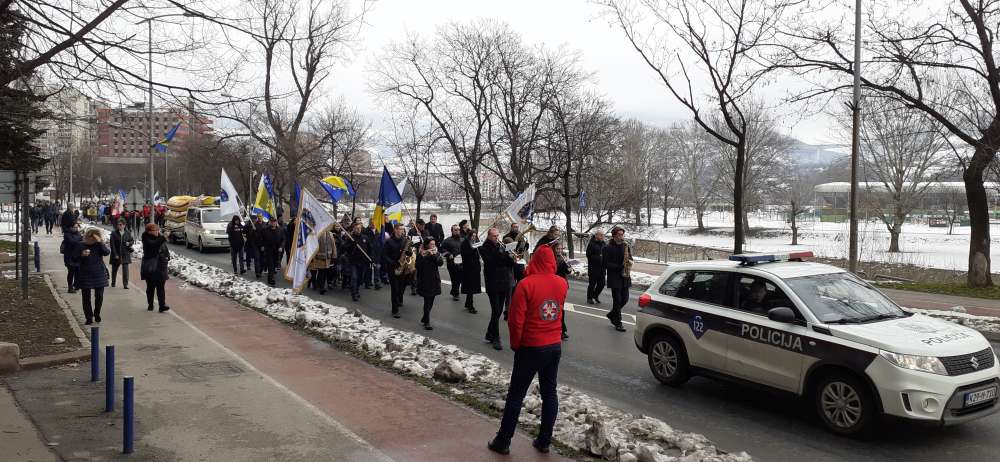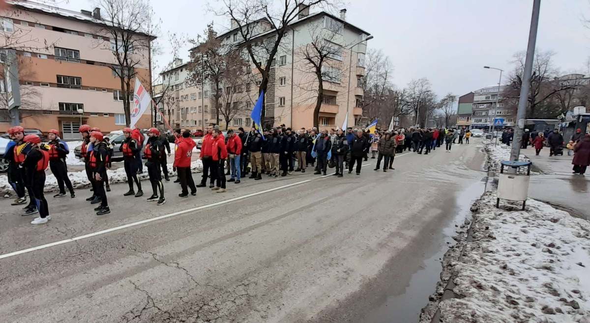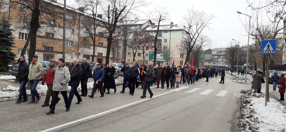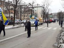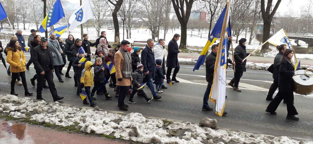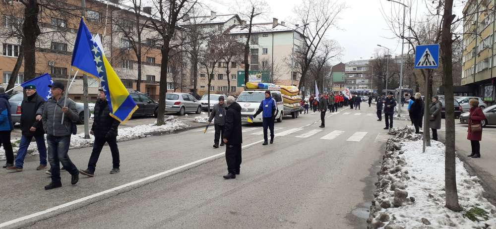 Nakon obraćanja i polaganja cvijeća na spomen-kosturnici Papirna, uslijedio je defile ulicama grada.