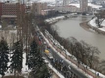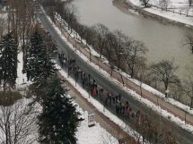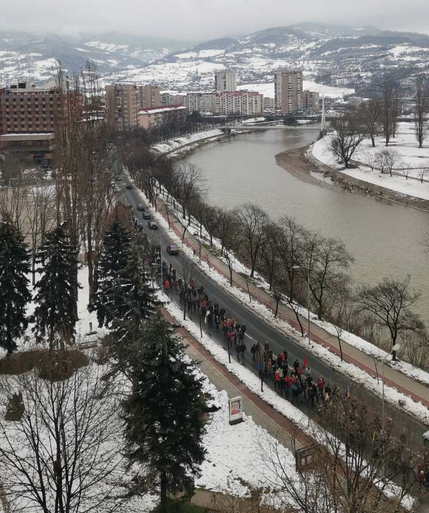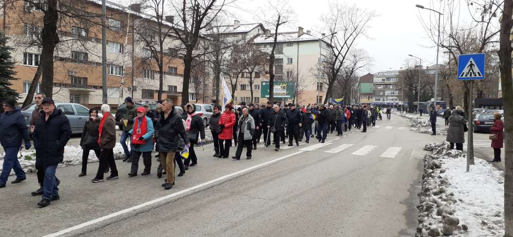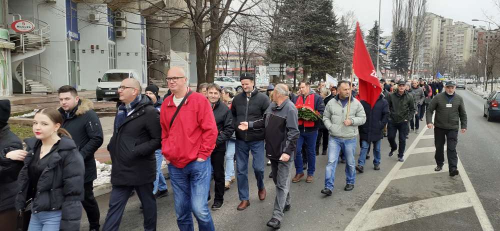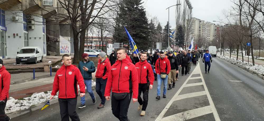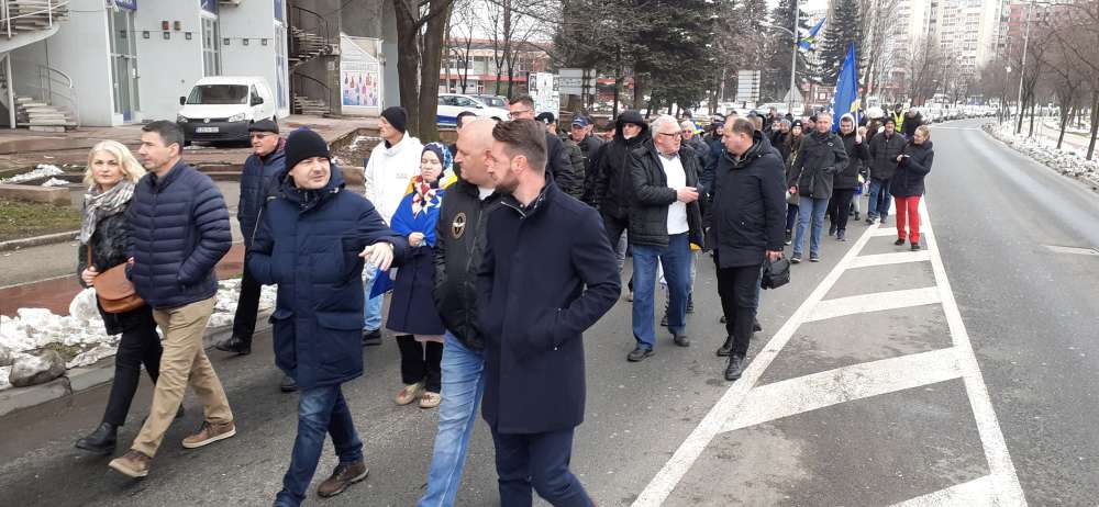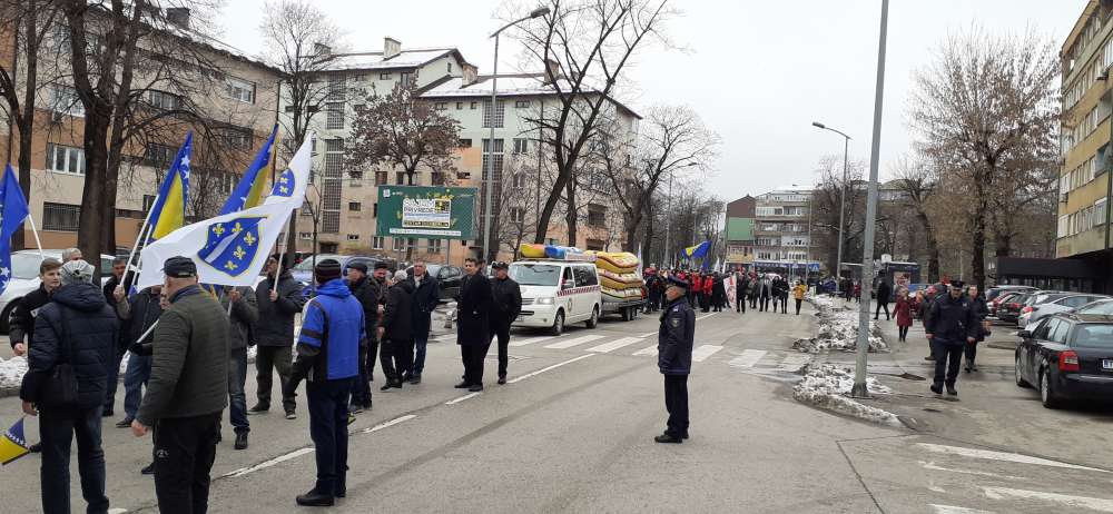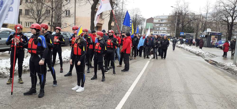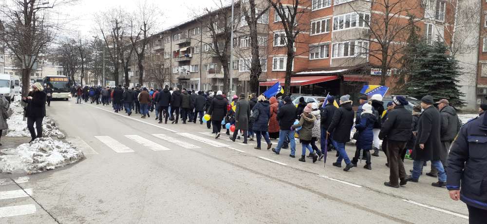 Nakon obraćanja i polaganja cvijeća na spomen-kosturnici Papirna, uslijedio je defile ulicama grada.