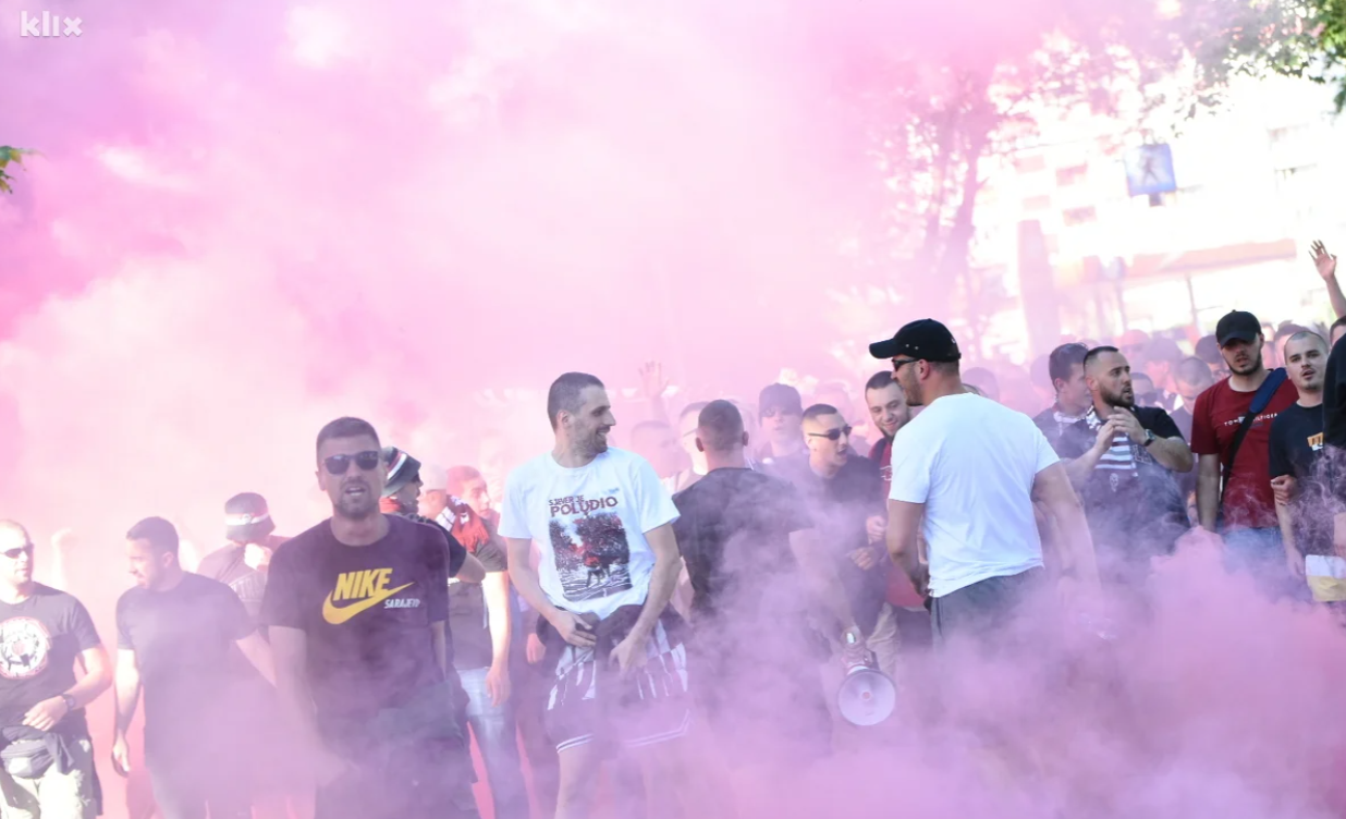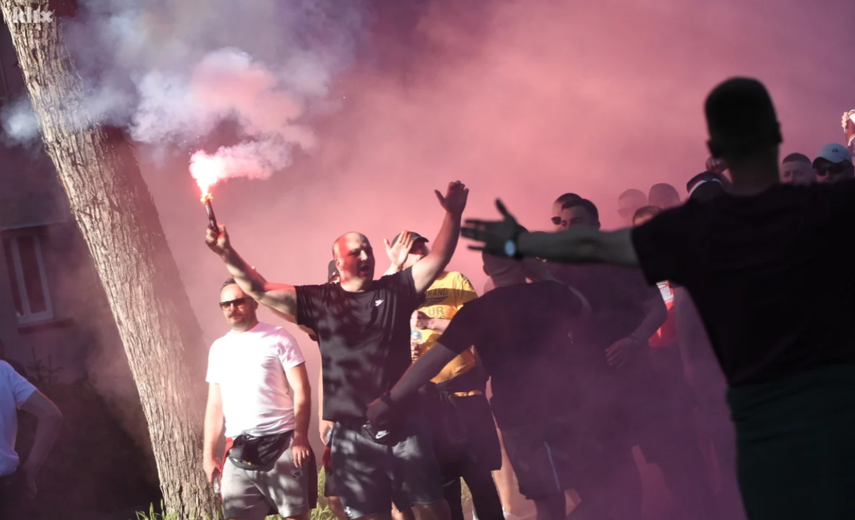 Pripadnici navijačke grupe Horde zla prethodno su vozom, autobusima i automobilima pristigli u Zenicu, a okupljanje je bilo na platou ispred željezničke stanice.