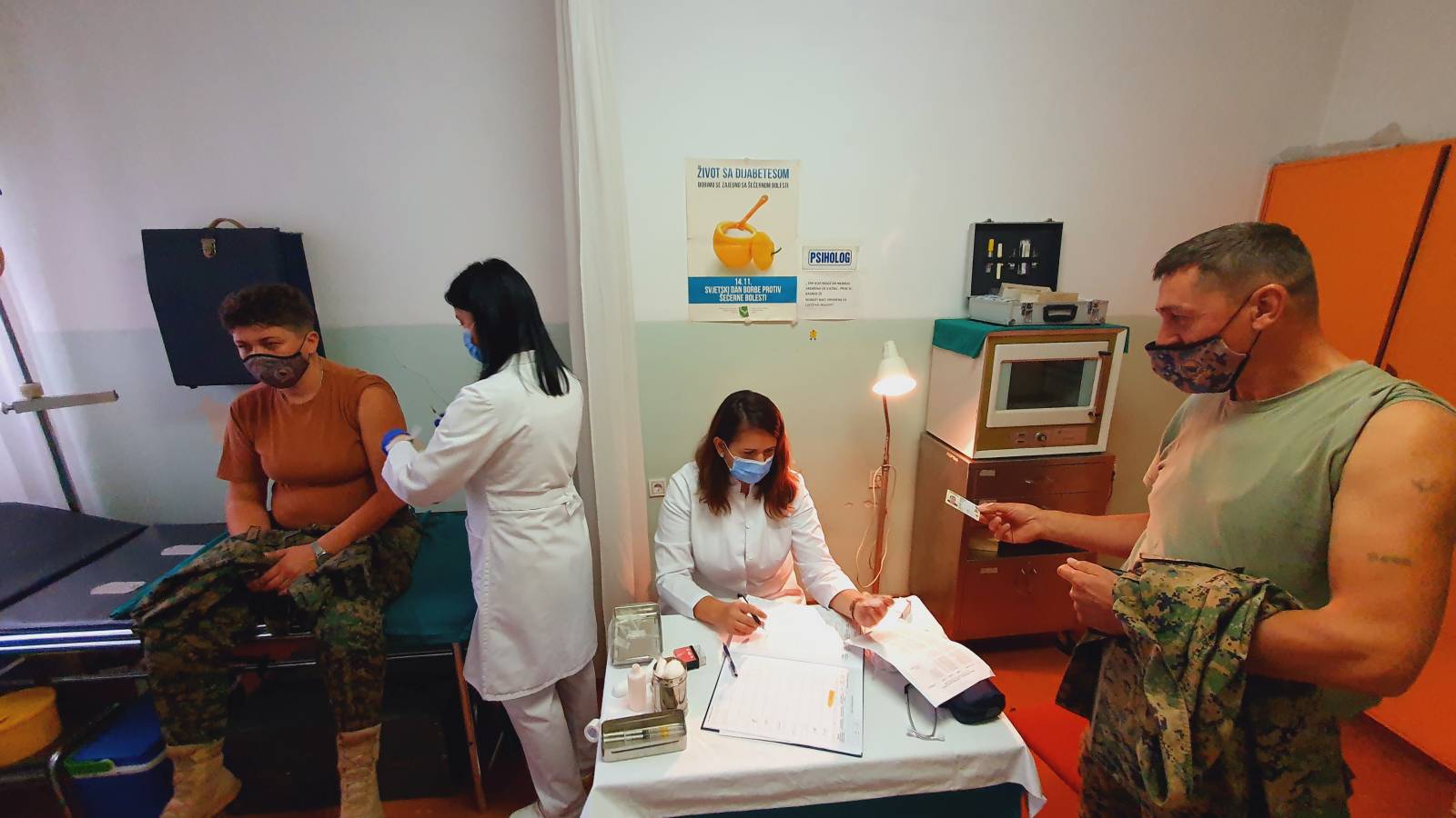 Mobilni tim Instituta za zdravlje i sigurnost hrane Zenica (INZ) ove sedmice je boravio u kasarni Oružanih snaga Bosne i Hercegovine (OS BiH) u zeničkom naselju Bilmišće, u kojoj je obavljen proces imunizacije dijela pripadnika Prvog pješadijskog puka 5. Pješadijske brigade OS BiH.