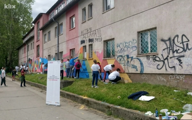 U ovom projektu učestvovalo je više desetina mladih koji su nakon nešto više od pet sati završili umjetnički mural.