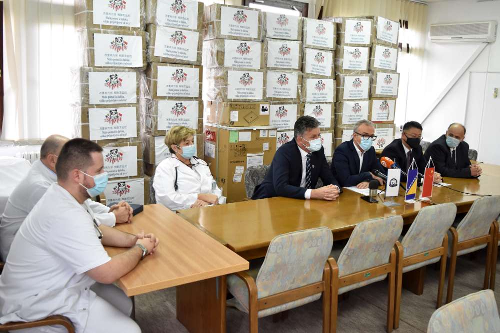 Ambasada Narodne Republike Kine u Bosni i Hercegovini donirala je 50.000 KM vrijednu donaciju medicinske i zaštitne opreme Kantonalnoj bolnici Zenica (KBZ), koja sadrži ultrazvučni aparat te 5.000 zaštitnih maski i 1.000 zaštitnih odjela za borbu protiv pandemije virusa Covid-19.