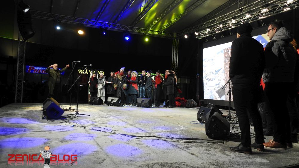 Nakon nastupa u Sarajevu, članovi Omladinskog hora su se odmah uputili u Zenicu gdje su iz autobusa odmah izašli na binu kako bi uz svoju publiku obilježili ovaj važan datum za našu historiju sa svojim performansom.