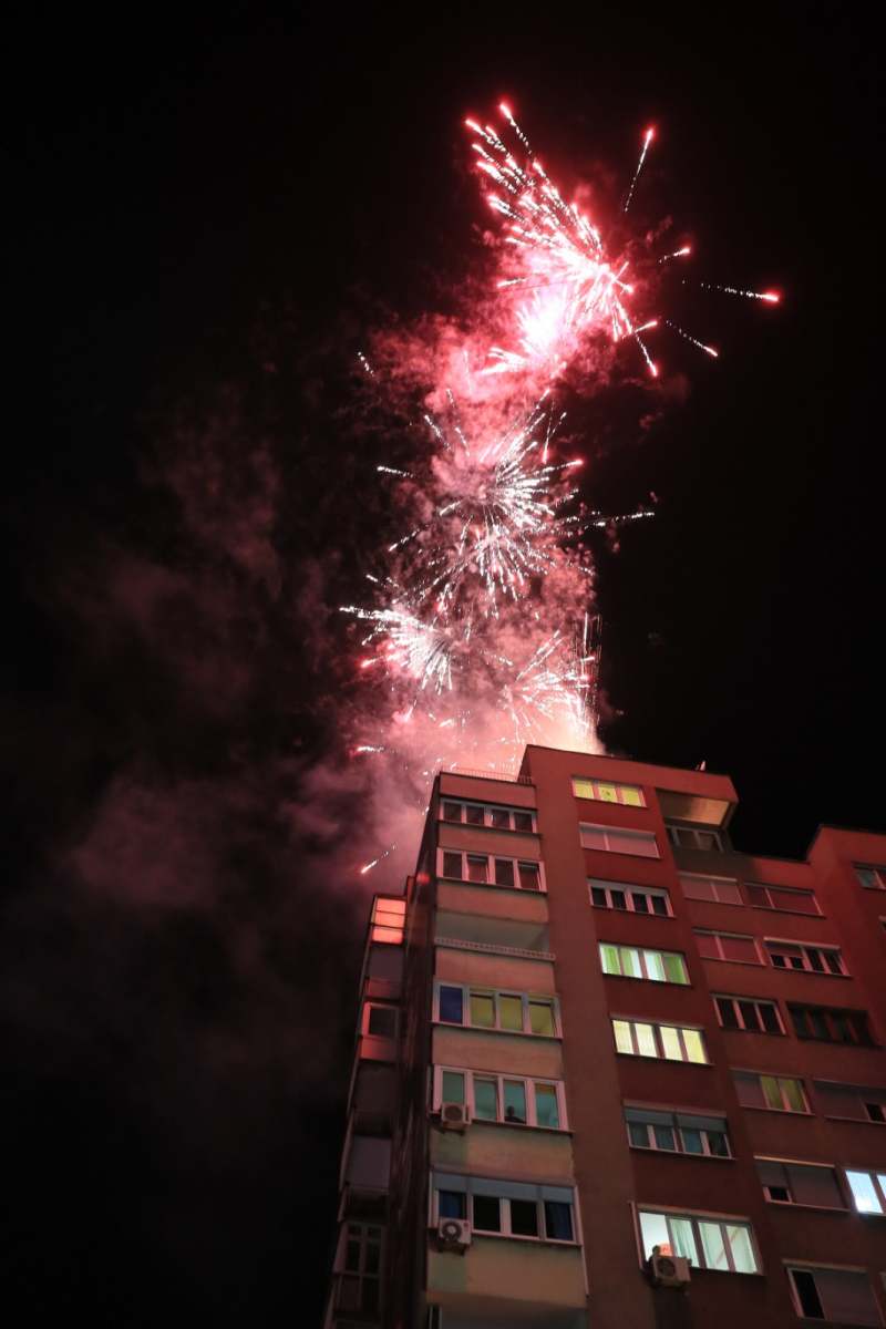 Po ispaljivanju vatrometa, kojeg su zvanice euforično ispratile s prskalicama u rukama, sačinjena je tradicionalna zajednička fotografija na ulazu ispred objekta, ukrašenog balonima crne i zlatne boje, kao i neizostavnim crvenim tepihom. Potom su se gosti zasladili velikom rođendanskom tortom, koju su Ivan i Andrija prerezali s majkom Vikicom.