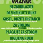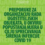 Između ostalih, date su preporuke o dezinfekcionim barijerima, dezinfekciji ruku, stolova i drugih površina, te date jednostavne preporuke kako za goste, tako i za osoblje i vlasnike.