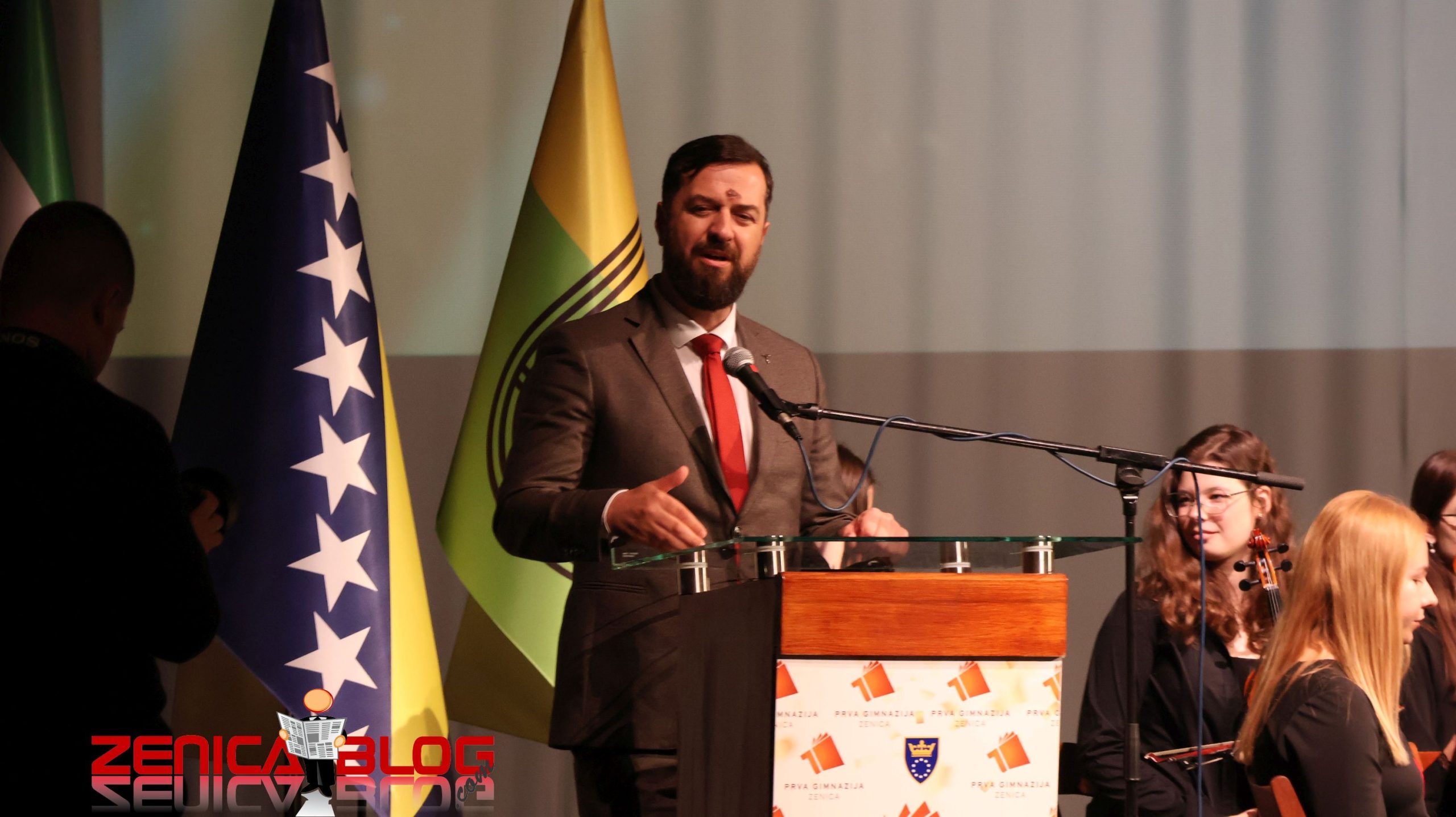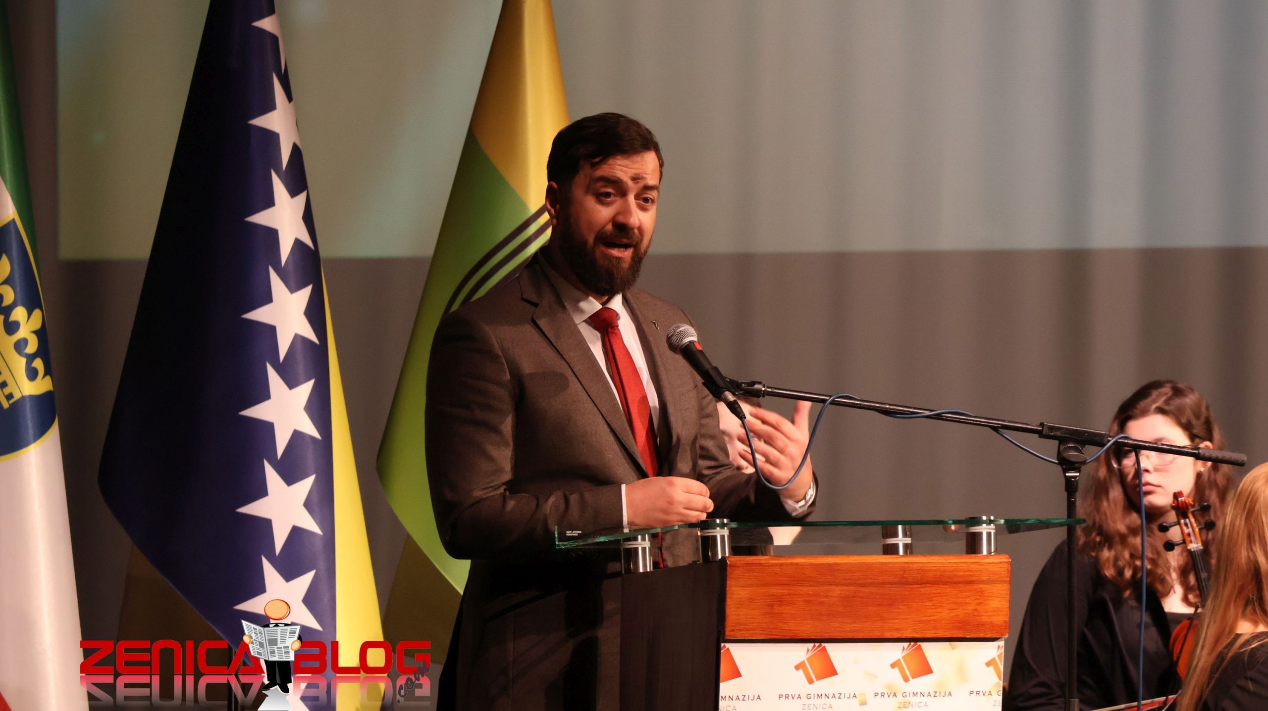 “Veliko mi je zadovoljstvo da sam ovdje i da imam priliku da proslavimo 80 godina jedne tako značajne ustanove. Ona je tokom ovih 80 godina radila svoju funkciju i ono zbog čega jeste i proizvodila je sjajne generacije ljudi koji su pronosili glas ne samo o Zenici, nego o čitavom kantonu diljem svijeta. Ti ljudi su zabilježili velike uspjehe na raznim poljima i nama je drago da imamo jednu takvu obrazovnu ustanovu kao što je Prva gimnazija” naglasio je Mušija.