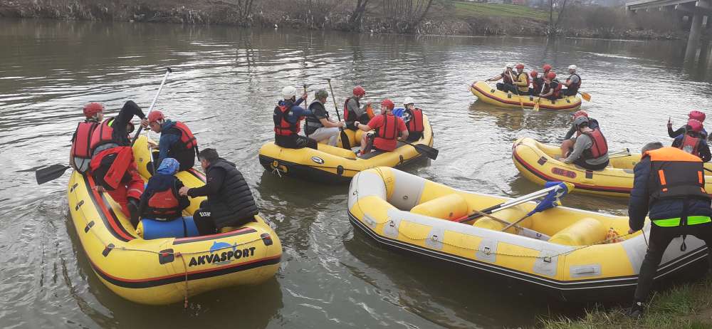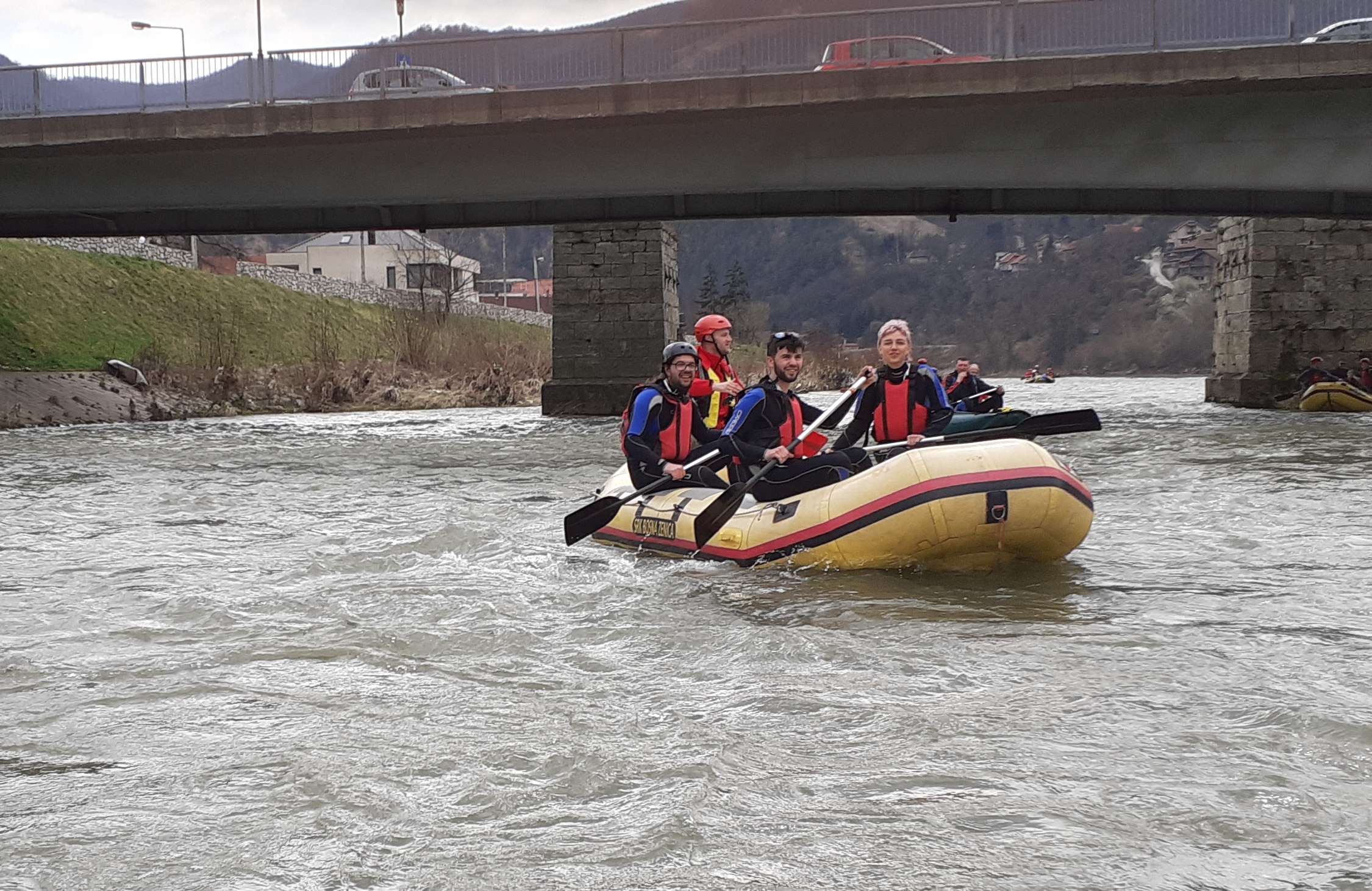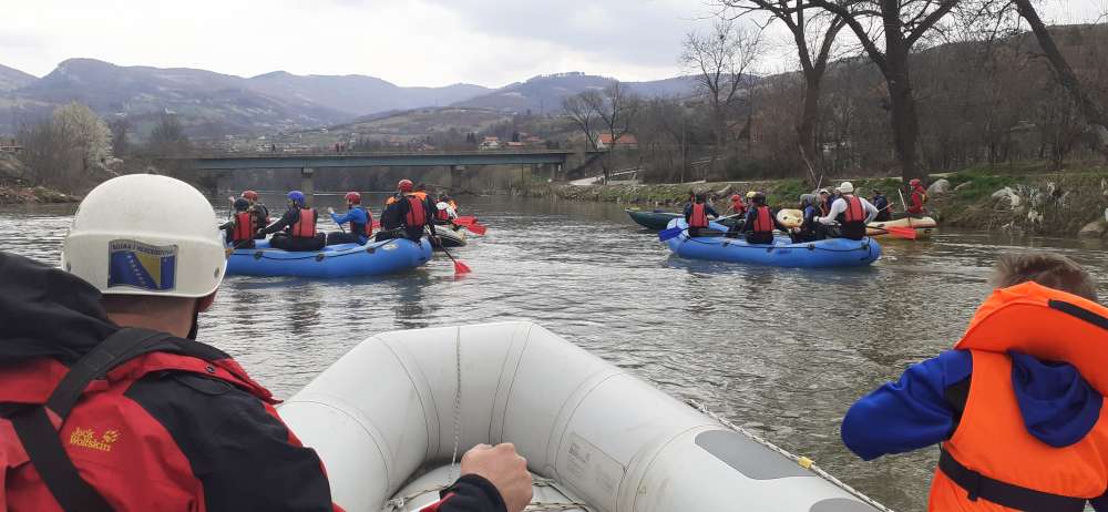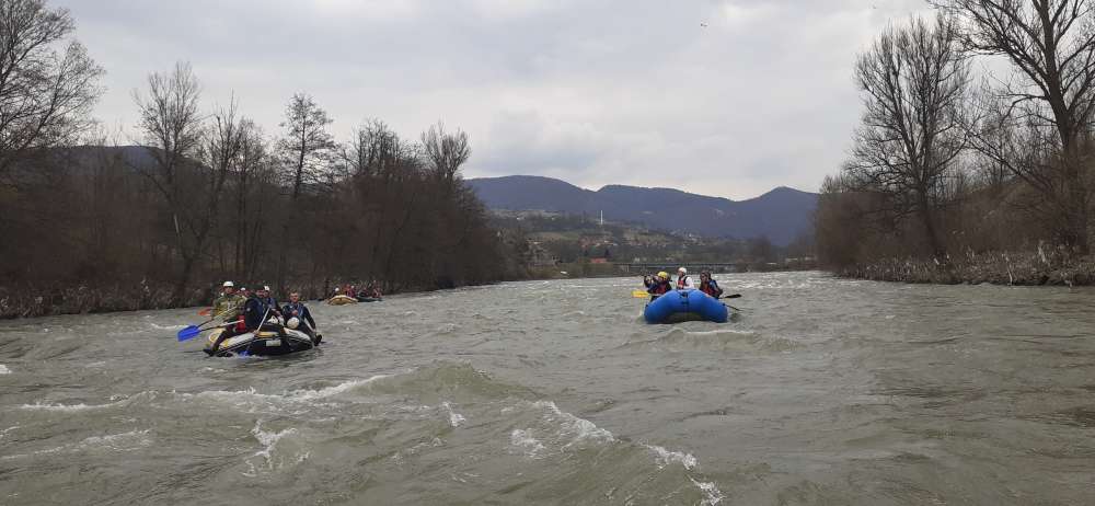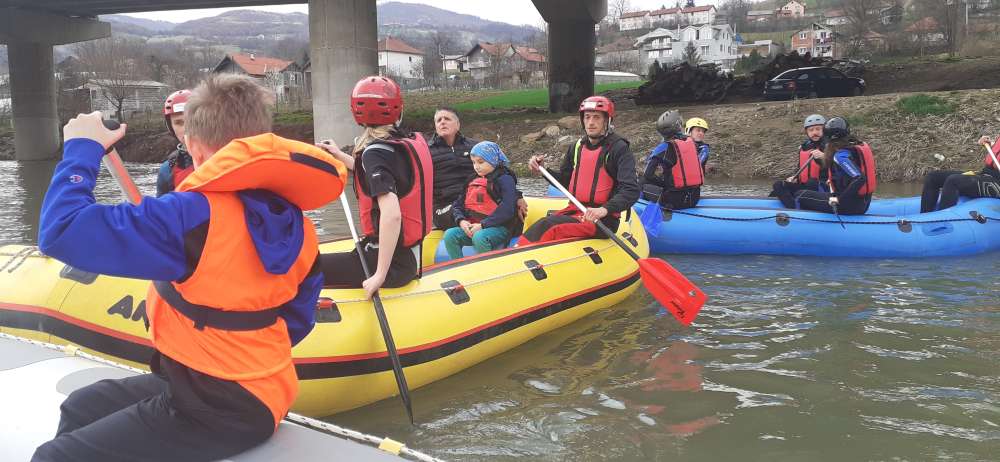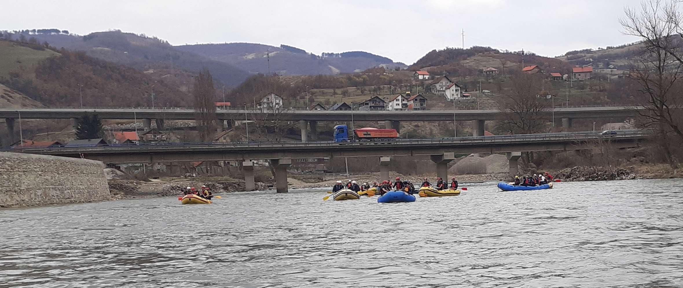 Prebacujemo se autobusom na odredište, gdje su vrijedni članovi SRK Bosna, Bojan, Demir, Zoran…naduvali čamce i sve je bilo spremno za ulazak u čamce. Prije polaska, ponovo se obratio Ekrem Tuka, dajući upute kako se ponašati u čamcu. Vrijeme je bilo, gotovo, idealno a rijeka je bila malo nadošla.