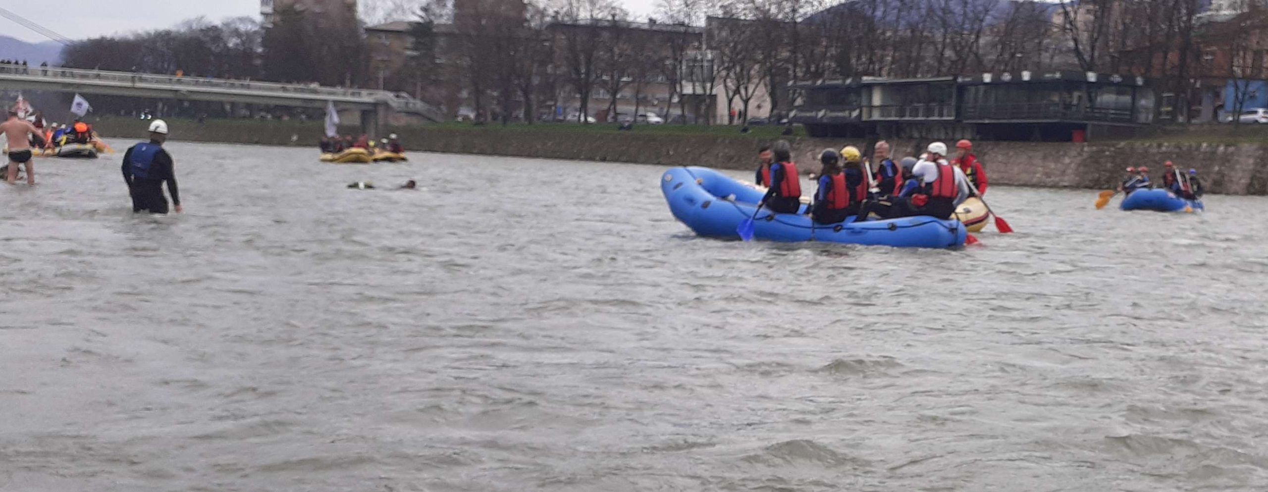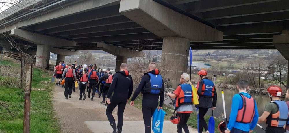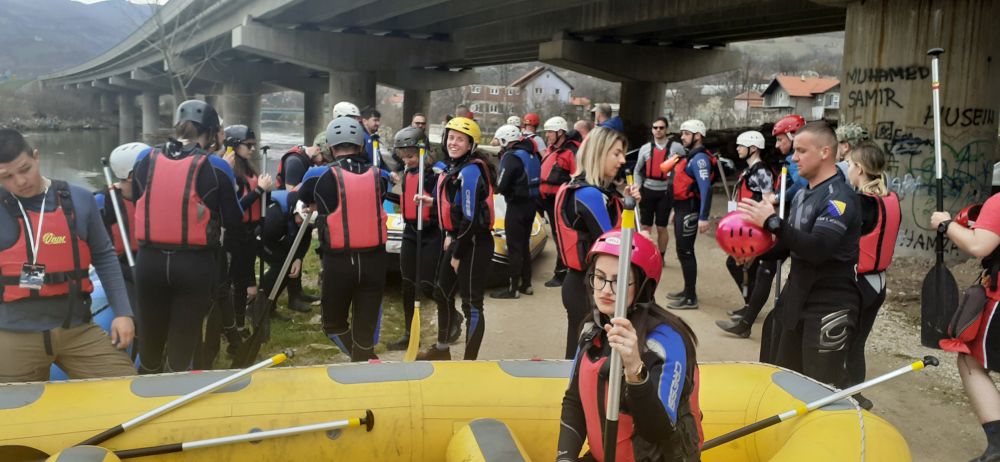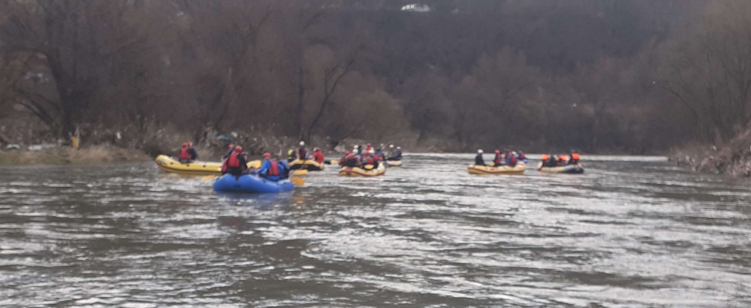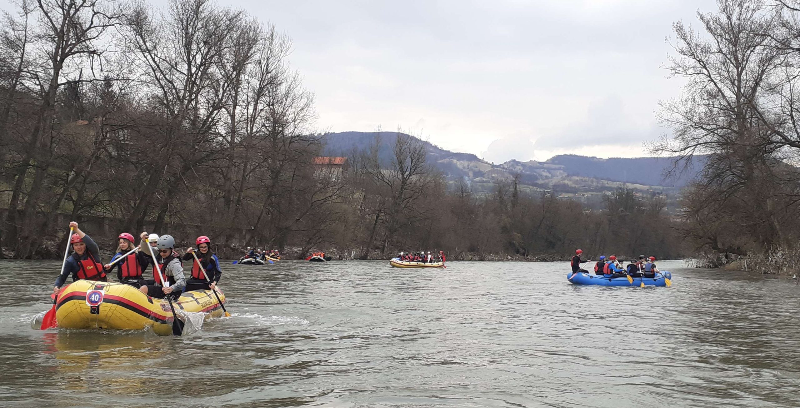 Prebacujemo se autobusom na odredište, gdje su vrijedni članovi SRK Bosna, Bojan, Demir, Zoran…naduvali čamce i sve je bilo spremno za ulazak u čamce. Prije polaska, ponovo se obratio Ekrem Tuka, dajući upute kako se ponašati u čamcu. Vrijeme je bilo, gotovo, idealno a rijeka je bila malo nadošla.