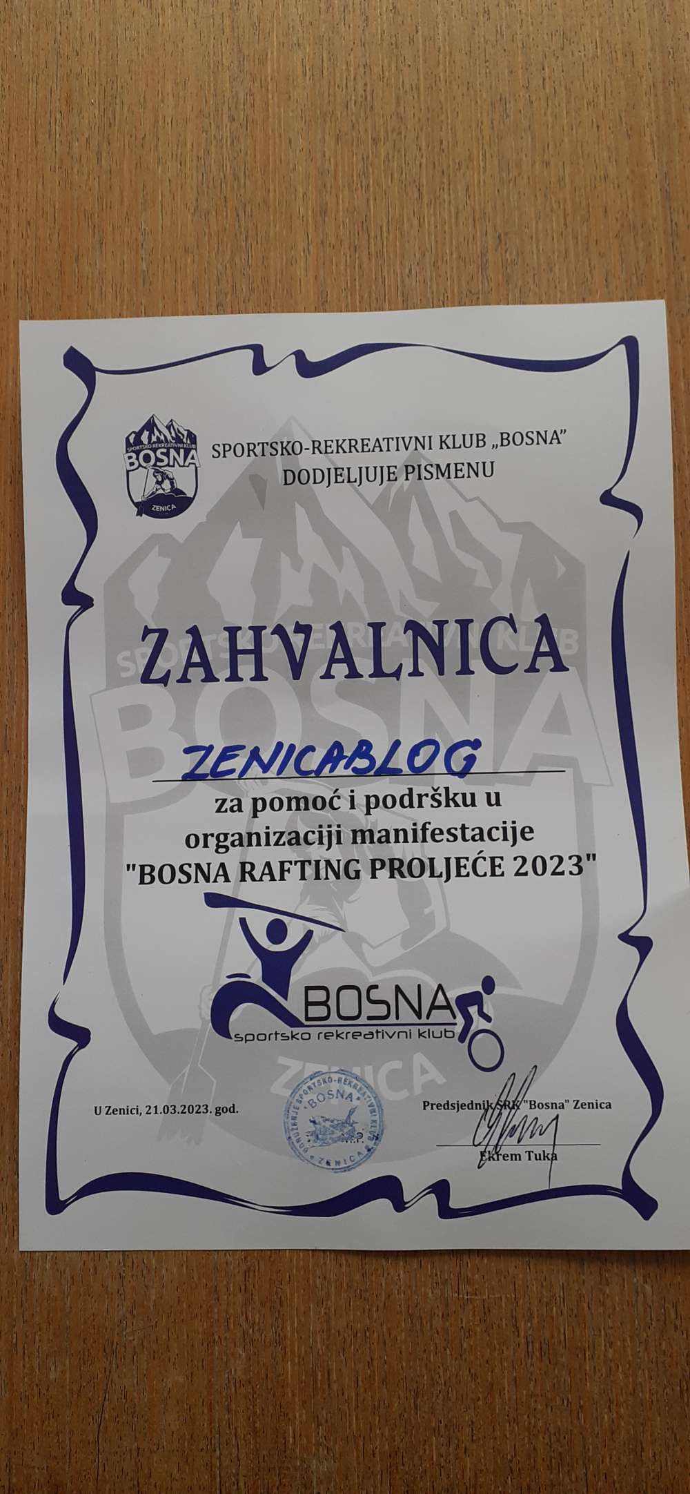 Za raftere je obezbjeđen ručak, a na kraju su podjeljene i zahvalnie za učesnike regate, među kojima je i naš portal Zenicablog.