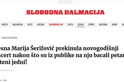 Šokantan trenutak na nastupu, Marija Šerifović jedva izvukla živu glavu, kaos na nastupu.. samo su neki od naslova koji su jutros osvanuli na portalia u Hrvatskoj i Srbiji nakon što je nastup Merije Šerifović u Zenici na dočeku Nove godine završen “15 minuta ranije”, kako je ona rekla.
