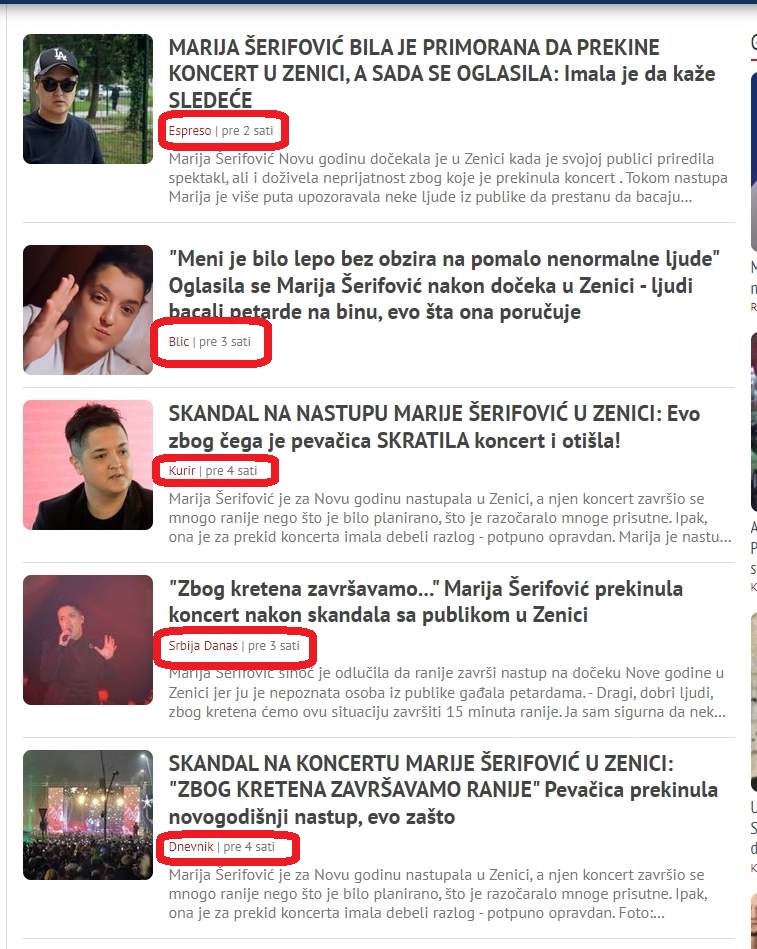 I portal “Direktno.hr” zna bolje od Marije, pa kaže da je publika razočarala Mariju, ali i da je ona koncert prekinula iz bizarnog razloga, s čim se možemo donekle i složiti. I “Dnevno.hr” prenosi navodnu dramu iz Zenice, te kaže da je Marija “Umalo nastradala”, te zlobno poručuje “u ime njenih prijatelja” – šta je tamo i radila, kad ima bebu.