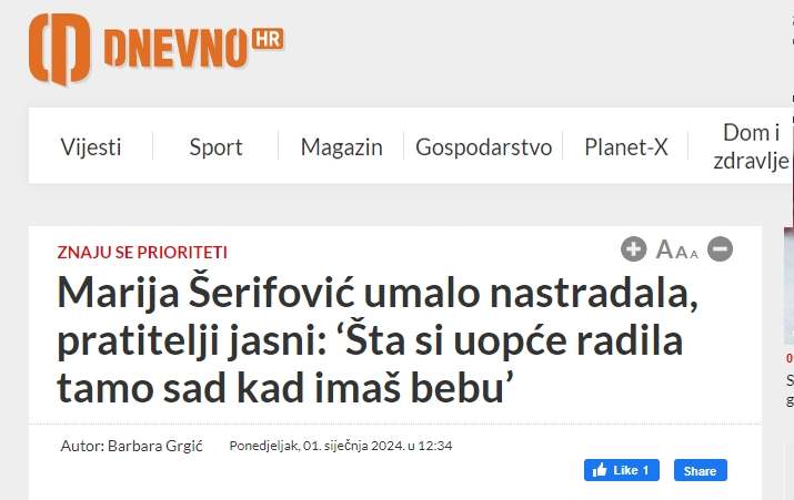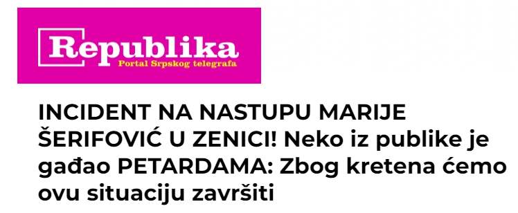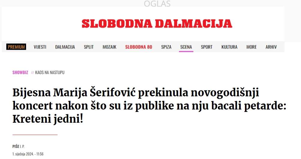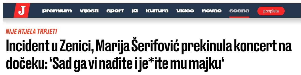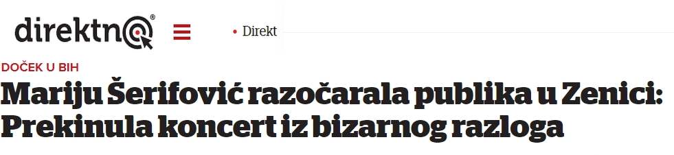 I portal “Direktno.hr” zna bolje od Marije, pa kaže da je publika razočarala Mariju, ali i da je ona koncert prekinula iz bizarnog razloga, s čim se možemo donekle i složiti. I “Dnevno.hr” prenosi navodnu dramu iz Zenice, te kaže da je Marija “Umalo nastradala”, te zlobno poručuje “u ime njenih prijatelja” – šta je tamo i radila, kad ima bebu.