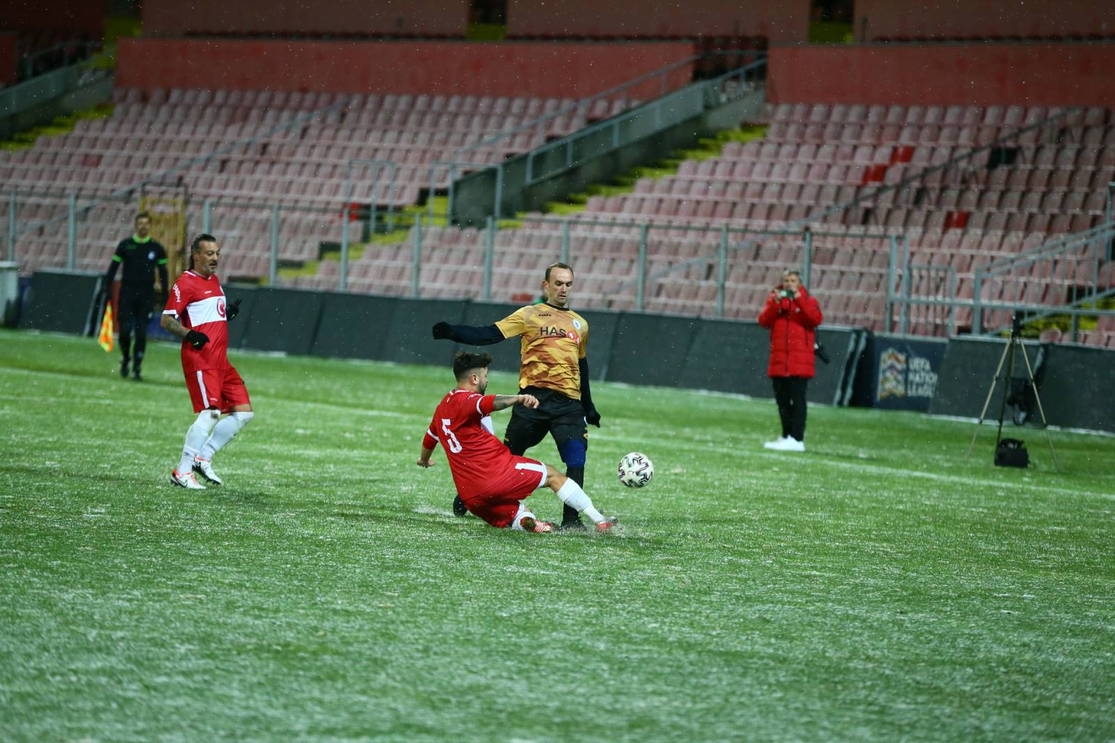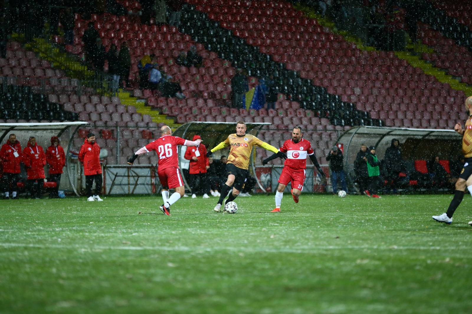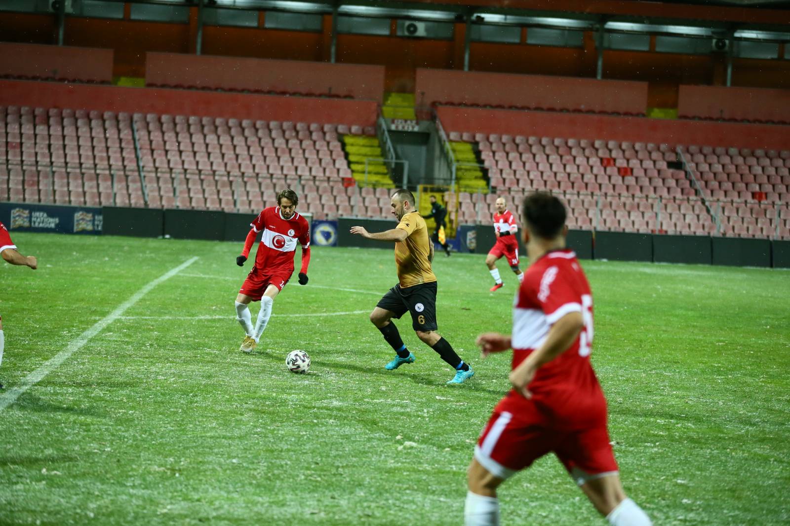 Meč, koji je odigran uprkos snježnim padavinama, je završen pobjedom turskog tima rezultatom 4:2.