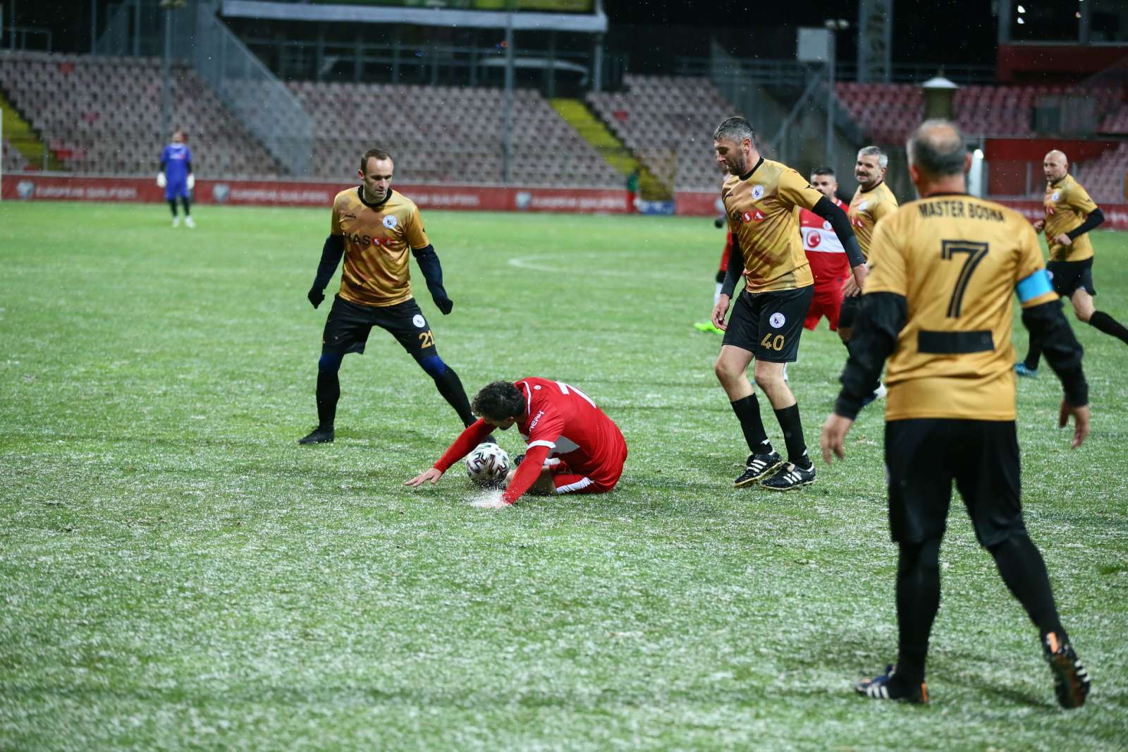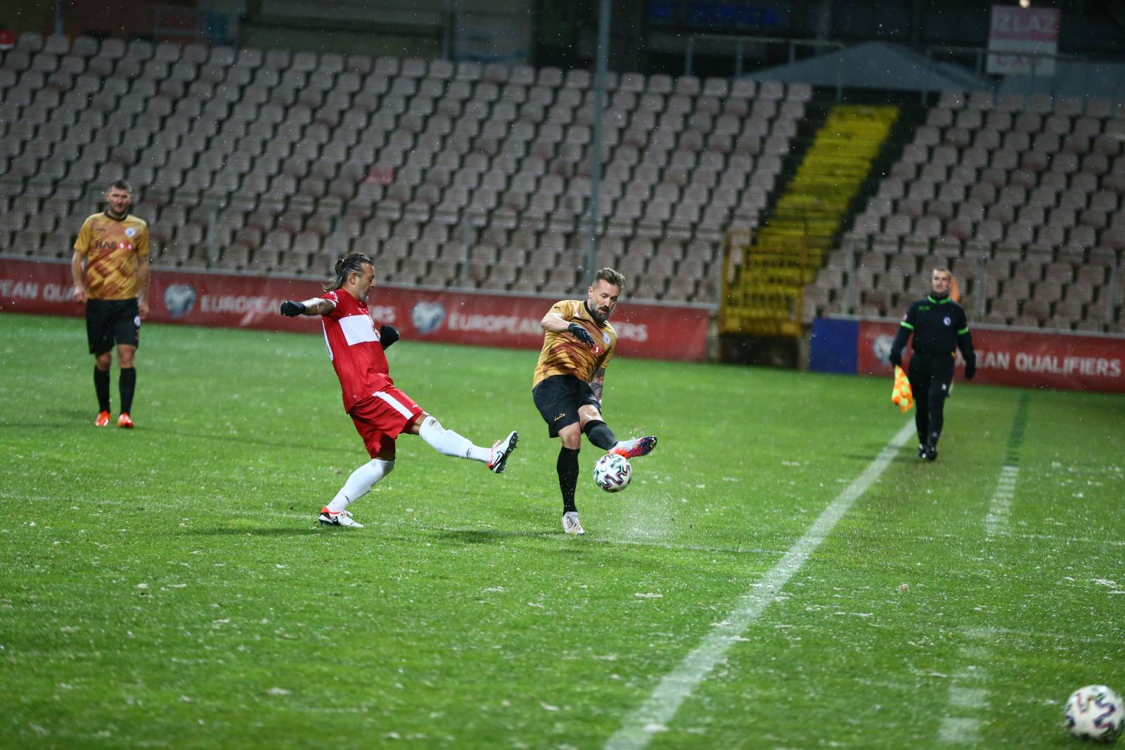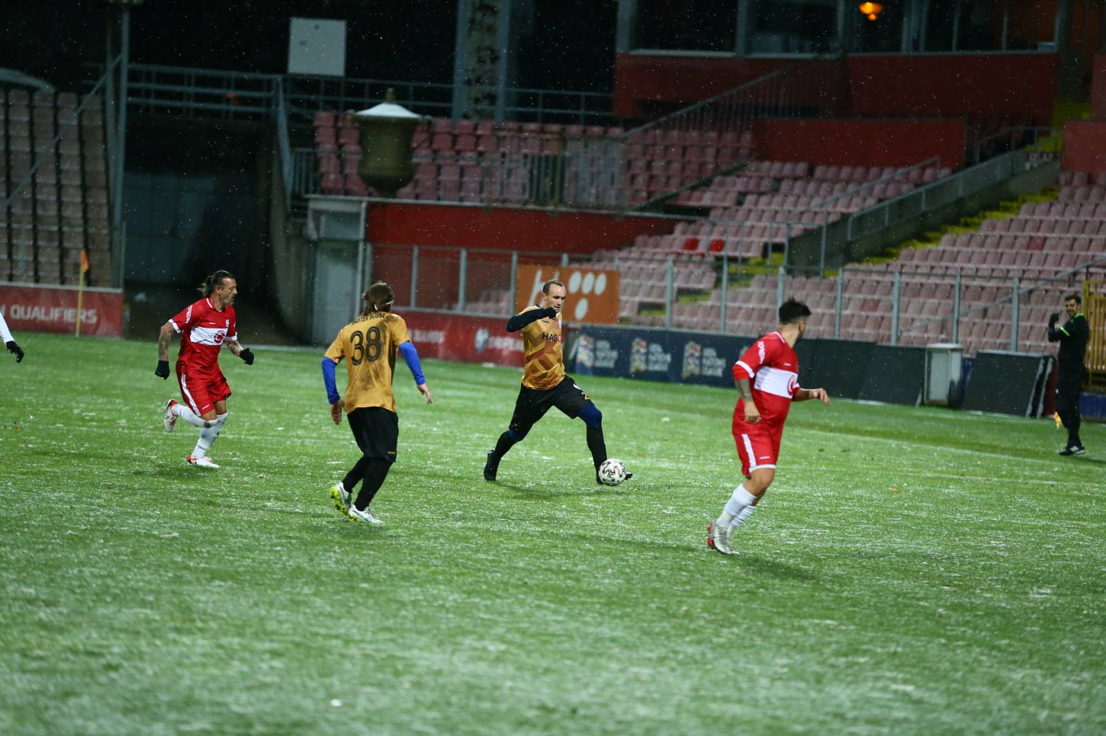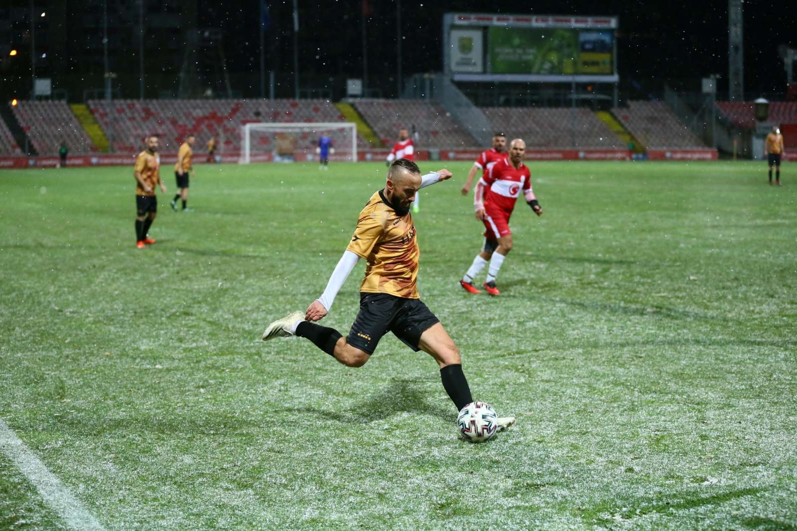 Meč, koji je odigran uprkos snježnim padavinama, je završen pobjedom turskog tima rezultatom 4:2.