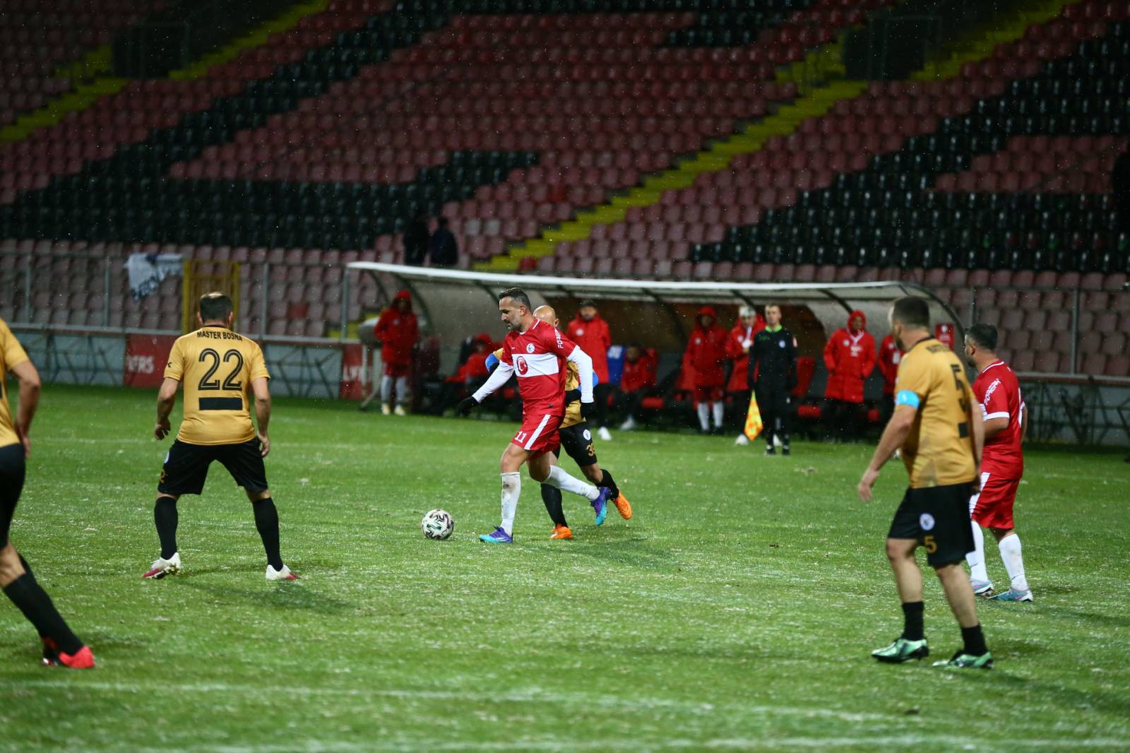 Na stadionu “Bilino polje” Zenici u subotu je povodom Dana državnosti Bosne i Hercegovine upriličen revijalni fudbalski meč amaterskih veteranskih reprezentacija iz Turske i Bosne i Hercegovine, odnosno proširenih timova klubova Master Bosna i turske asocijacije TMVFL.