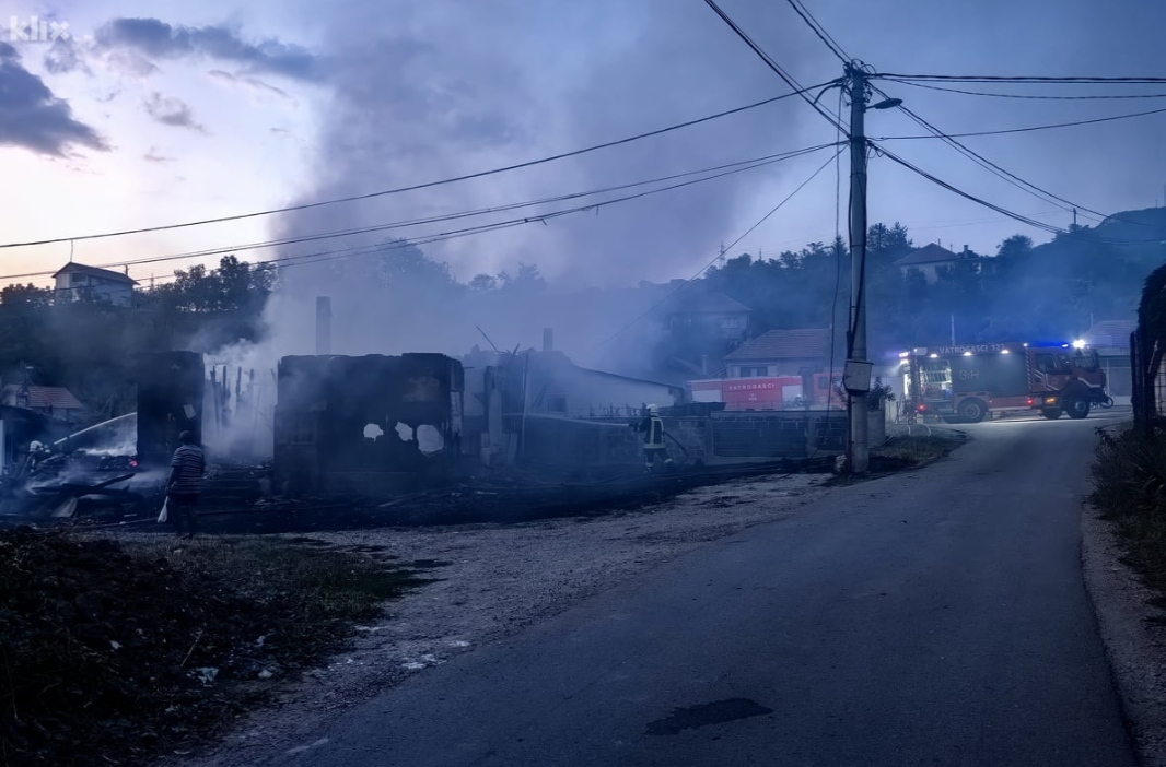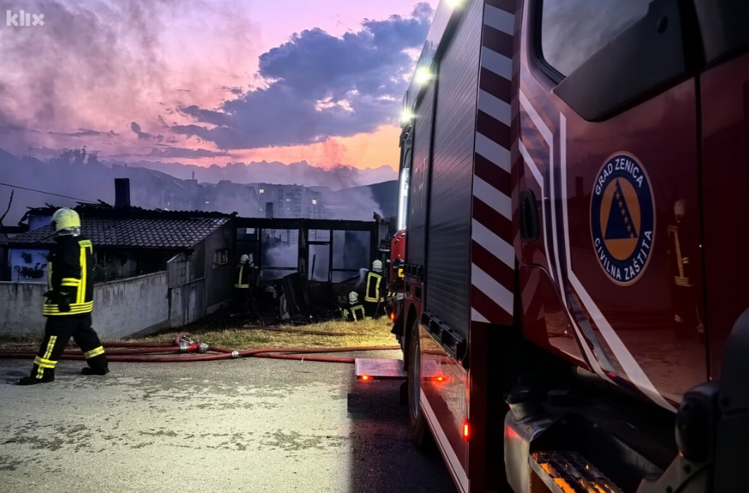 Dodali su da u požaru nije bilo povrijeđenih osoba, a pripadnici Profesionalne vatrogasne jedinice grada Zenice više od sat vremena su se borili kako bi lokalizovali požar s obzirom da je konstrukcija barake od drveta.