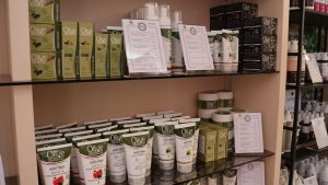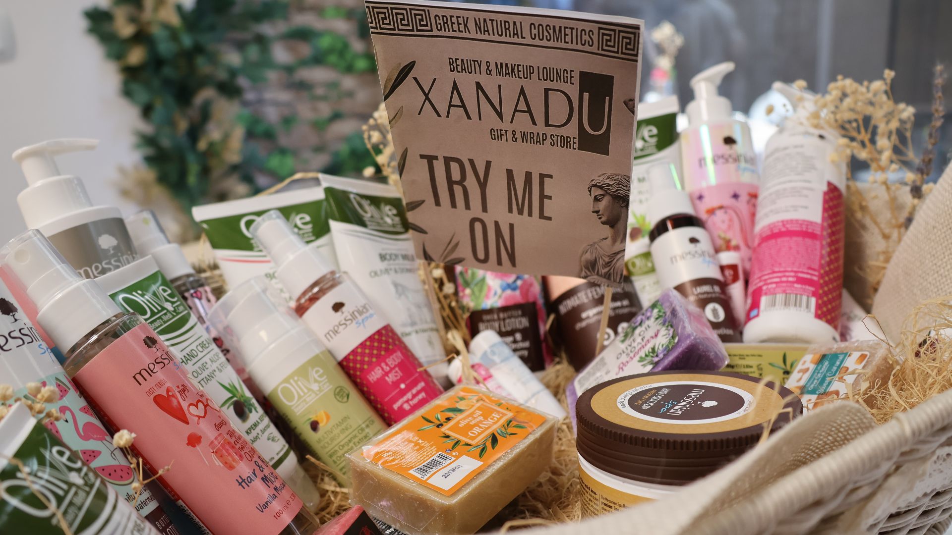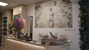 Police shopa krase proizvodi koji nose duh juga, konkretno Grčke: vrhunska maslinova ulja, prirodna kozmetika, ručno rađeni sapuni, med te unikatni poklon setovi. Pored toga, XANADU nudi i profesionalni make-up lounge – prostor posvećen ljepoti, njezi i personaliziranim uslugama.