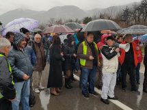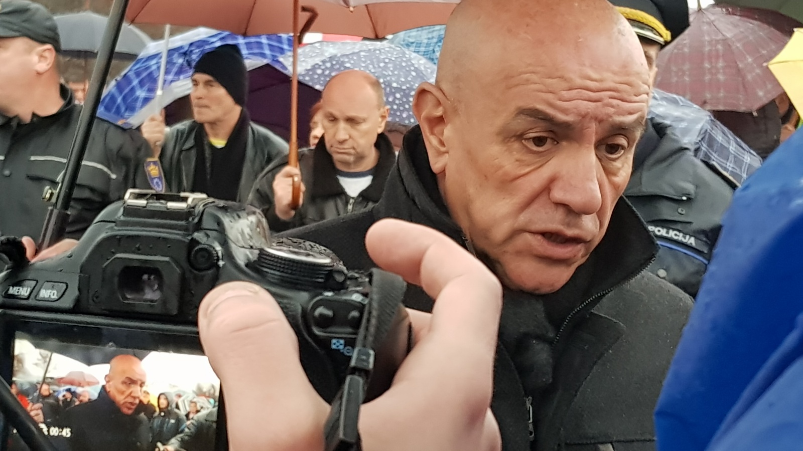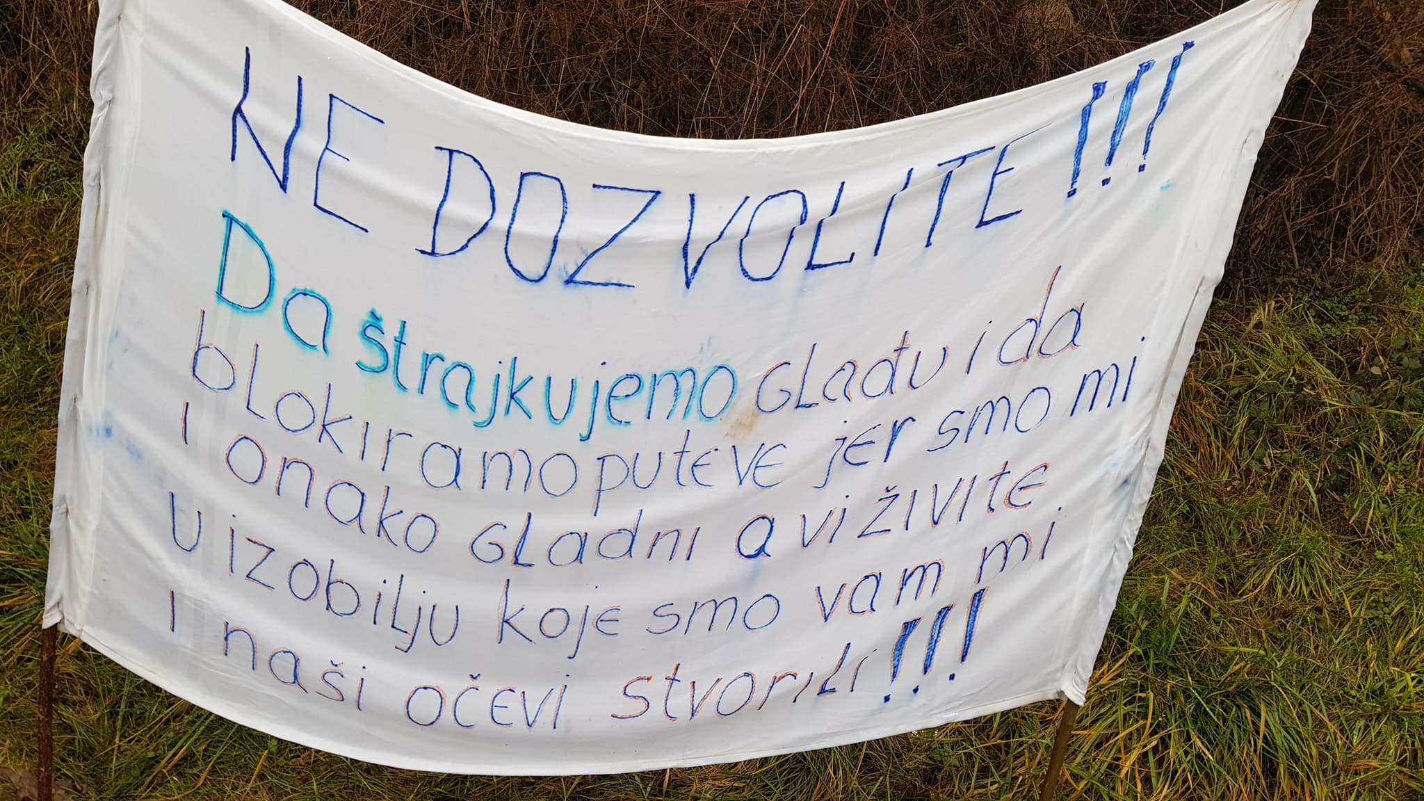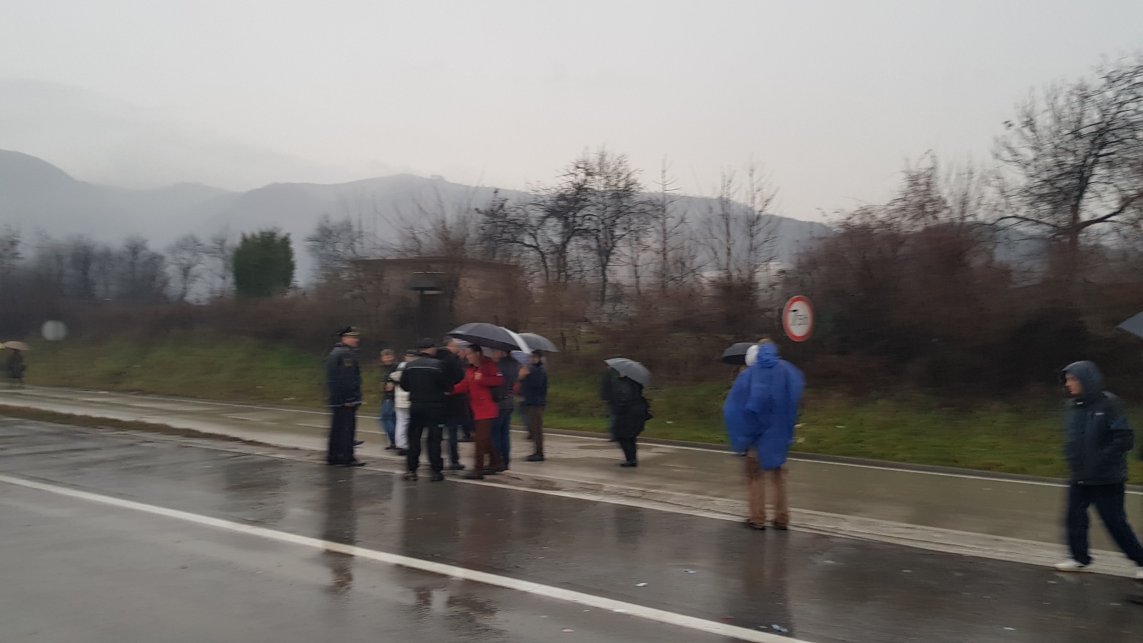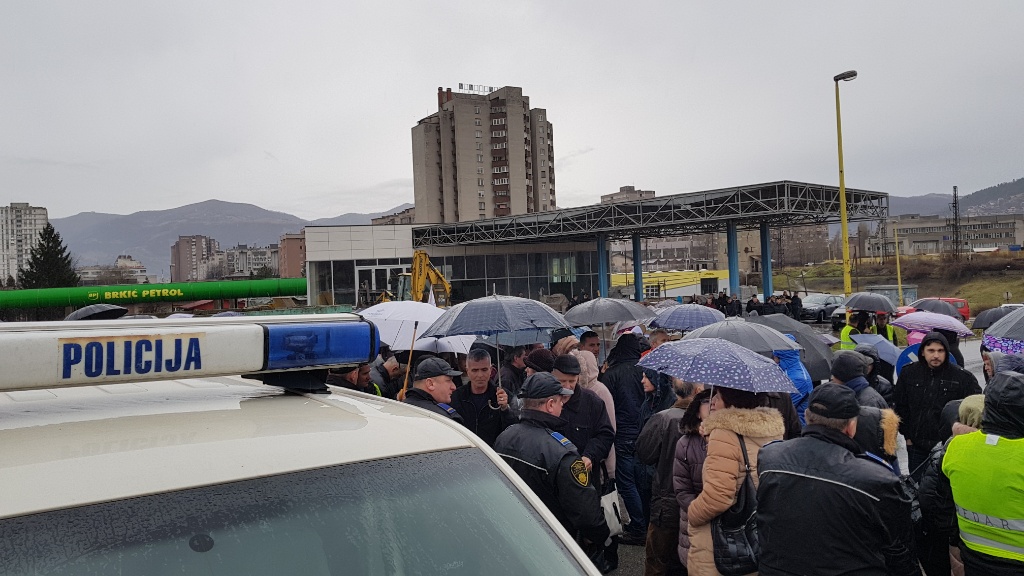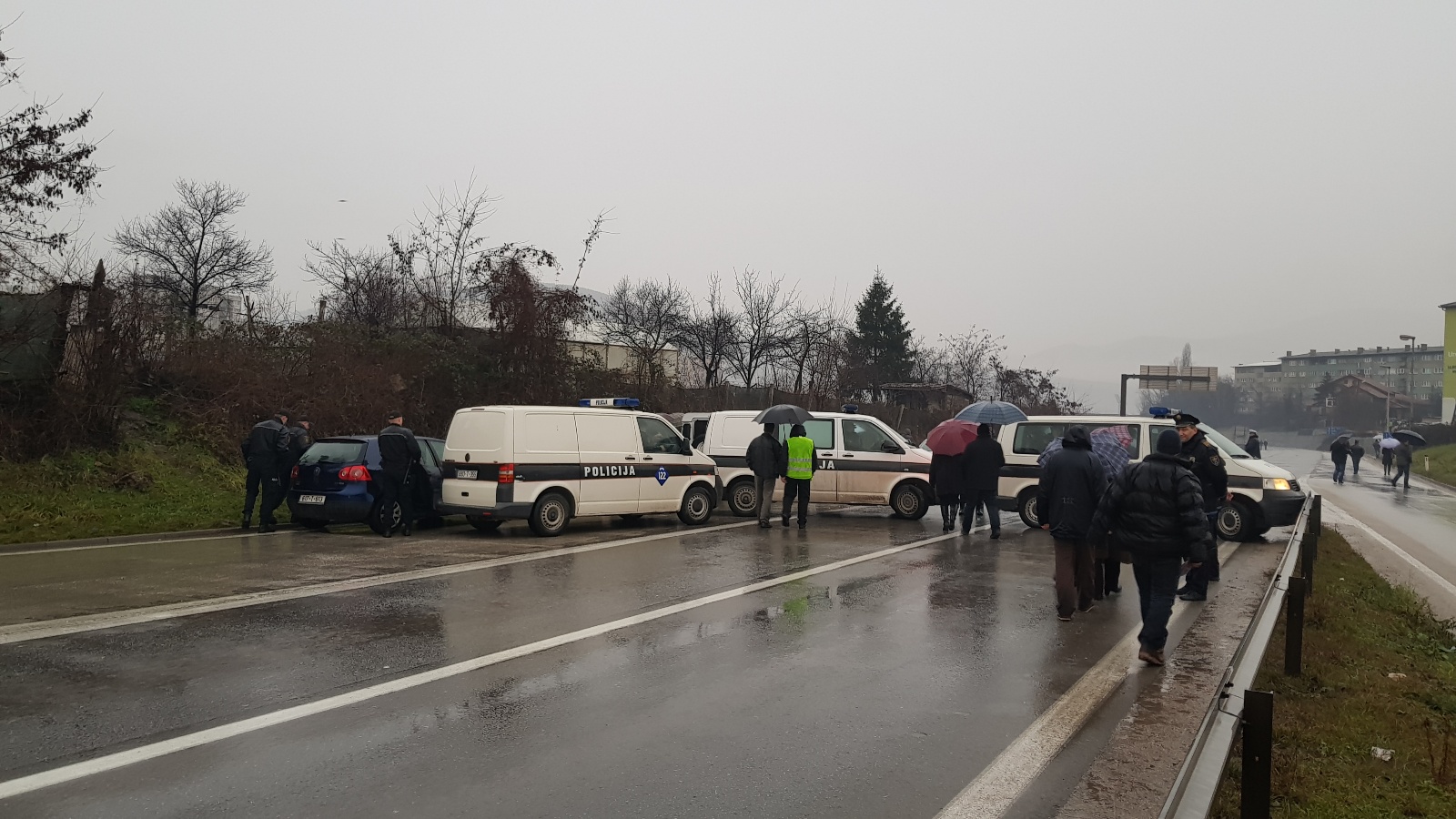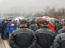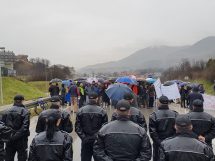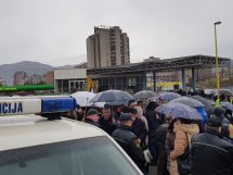 Nakon što su više od sat bezuspješno pokušavali da ubijede kordon policije da im dopusti da i danas, kao jučer, blokiraju magistralni put M17, nakon stajanja na kiši na petlji Blatuša uputili su se pješice kroz grad ka petlji Radakovo.
