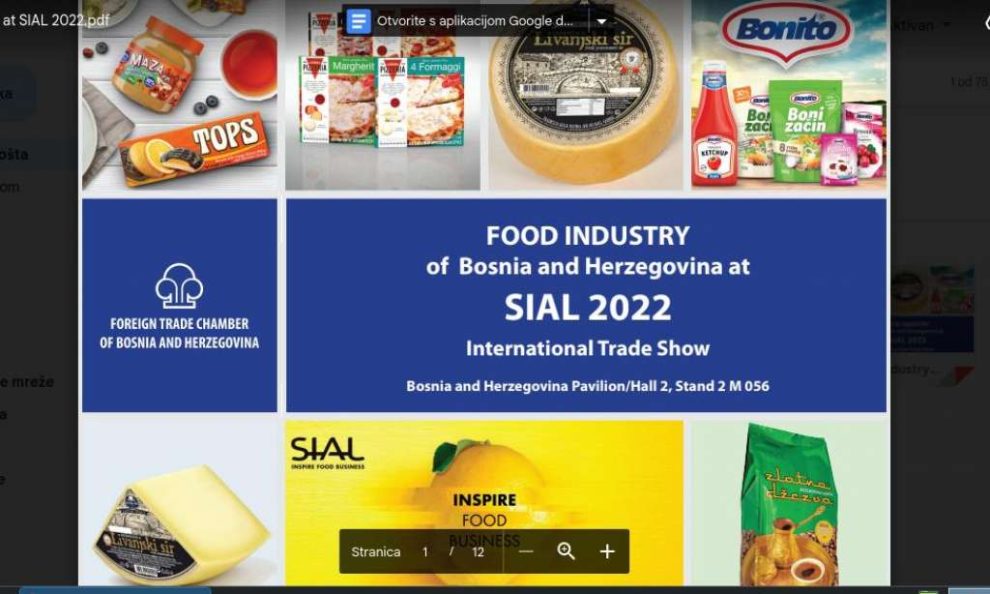 Vanjskotrgovinska komora Bosne i Hercegovine (VTKBiH) uz podršku SIPPO-a, prvi put će predstaviti prehrambenu industriju i prirodne sastojke BiH na zajedničkom štandu na sajmu SIAL u Parizu od 15. do 19. oktobra ove godine.
