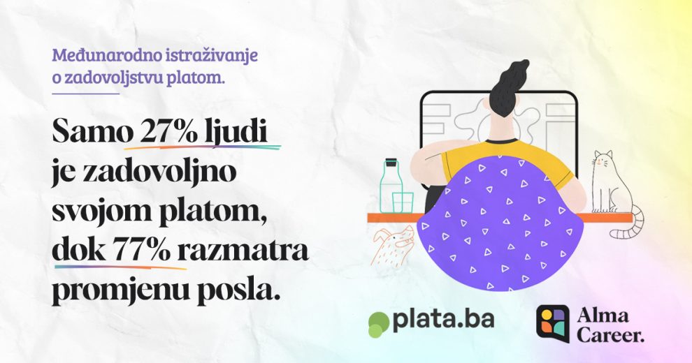Alma Career, tržišni lider koji posluje u više zemalja Srednje i Istočne Evrope, nedavno je proveo međunarodno istraživanje o zadovoljstvu platom putem platforme Paylab (Plata.ba u BiH), obuhvativši stavove oko 15.000 učesnika iz devet zemalja (Bosna i Hercegovina, Hrvatska, Slovenija, Sjeverna Makedonija, Češka, Slovačka, Estonija, Litvanija i Latvija).