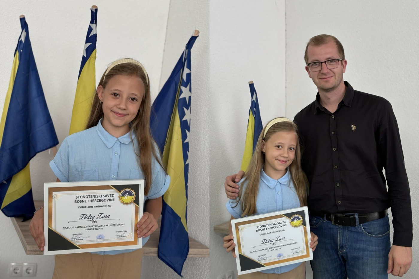 Naša Zara Zlotrg je proglašena najboljom najmlađom kadetkinjom u BiH na osnovu ostvarenih rezultata i zauzetog 1. mjesta na rang listi.