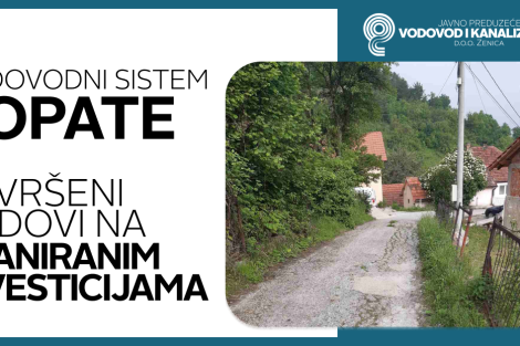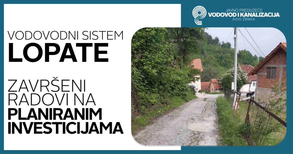 JP ViK d.o.o. Zenica obavještava javnost da je uspješno okončalo radove na izgradnji vodovodnog sistema Lopate. Izgradnjom vodovodnog sistema Lopate su riješeni dugogodišni problemi sa nestašicom vode za sve mještane ovog naselja na obroncima Janjičkog vrha.