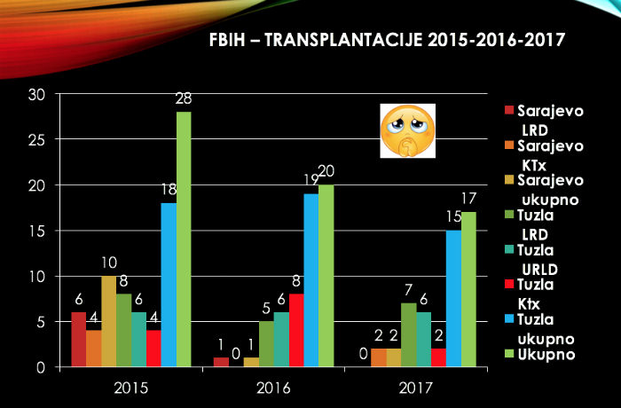 Govoreći o statističkim podacima, u prošloj 2018. urađeno je samo 20 transplantacija kao i u 2017. godini. Usporedbe radi, Republika Hrvatska uradi između 300 i 400 transplantacija na godišnjoj razini, a znamo da je i po broju stanovnika i po broju pacijenta gotovo identična sa BiH.