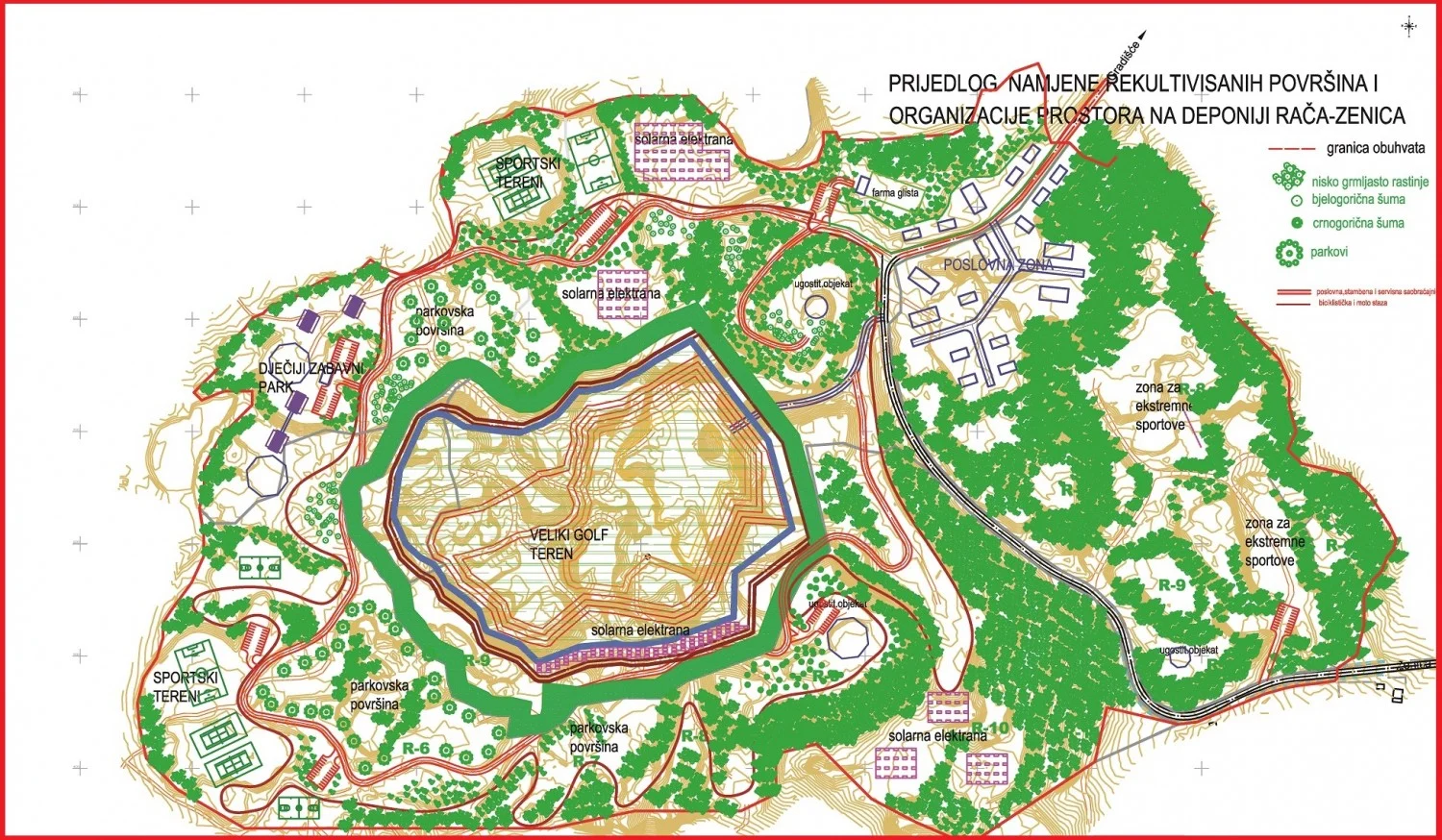 Da, u centralnom dijelu sadašnje deponije trebalo bi biti golf igralište. Planirani su i sportski tereni, dječije igralište, parkovi, ugostiteljski objekti, nekoliko solarnih elektrana i – farma glista!