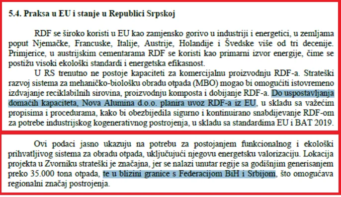 Vratimo se najavljenim gradnjama teroelektrana na komunalni otpad. One su ekonomične tek ako prerađuju oko 500.000 tona otpada. Za onu u Zvorniku u toku je postupak dobijanja dozvole. U studiji o procjeni uticaja na životnu sredinu je navedeno kako je riječ postrojenju za suspaljivanje, sa primarnom funkcijom proizvodnje energije (električne i toplotne), a RDF i komunalni čvrsti otpad se koristi kao osnovno gorivo. Kako prema procjenama u entitetu Republika Srpska godišnje biva nagomilano 389.000 tona komunalnog otpada, jasno je da investitori računaju i na uvoz otpada iz Srbije te Evropske unije.