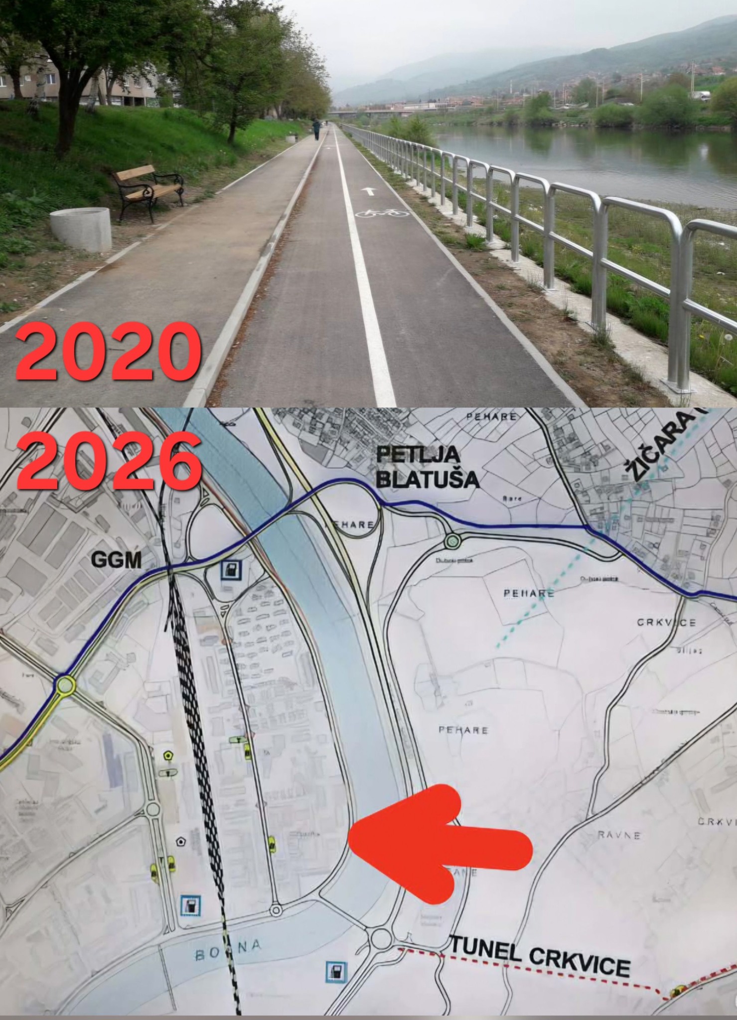 ZENICA: Urbanistički plan predviđa rušenje šetnice i biciklističke staze izgrađene prije nekoliko godina, a na koju je potrošeno 275.000 KM- Zenički arhitekta Boris Britvar istakao je da će nakon usvajanja predloženog Urbanističkog plana Grada Zenice doći do uklanjanja postojeće šetnice i biciklističke staze u naselju Blatuša, izgrađene 2020. godine sredstvima građana u iznosu od oko 275.000 KM.